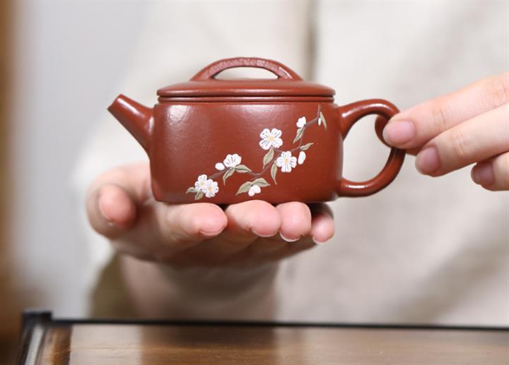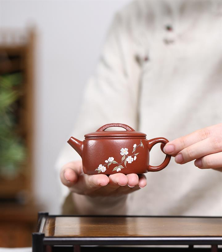 80cc原礦朱泥泥繪小漢瓦茶壺POT8548