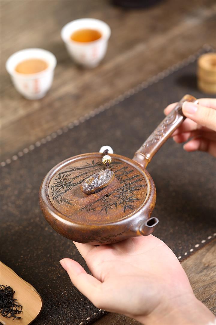【作品介紹】此款壺形線條流暢,壺把,壺嘴,壺身壹氣呵成栩栩如生,是收藏把玩的好壺,泥料色澤古樸典雅,日久使用,漸露鋒芒,養成變化快,溫潤莊重,用其泡茶,使用的年代久,壺身就溫潤,泡出來的茶湯也就醇郁芳馨。