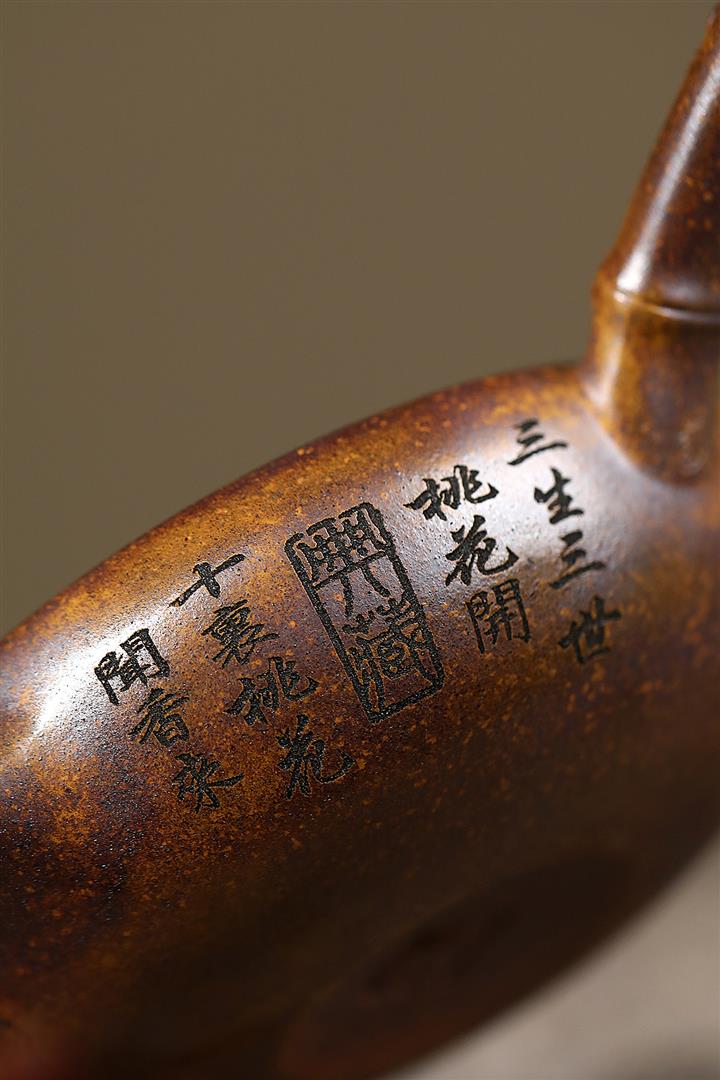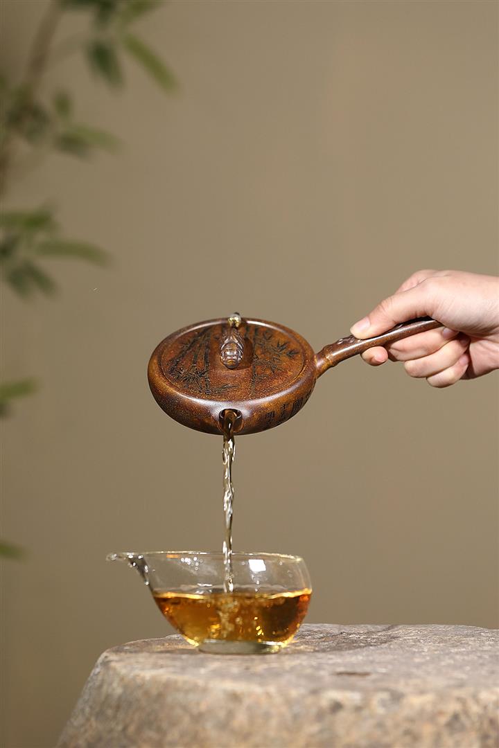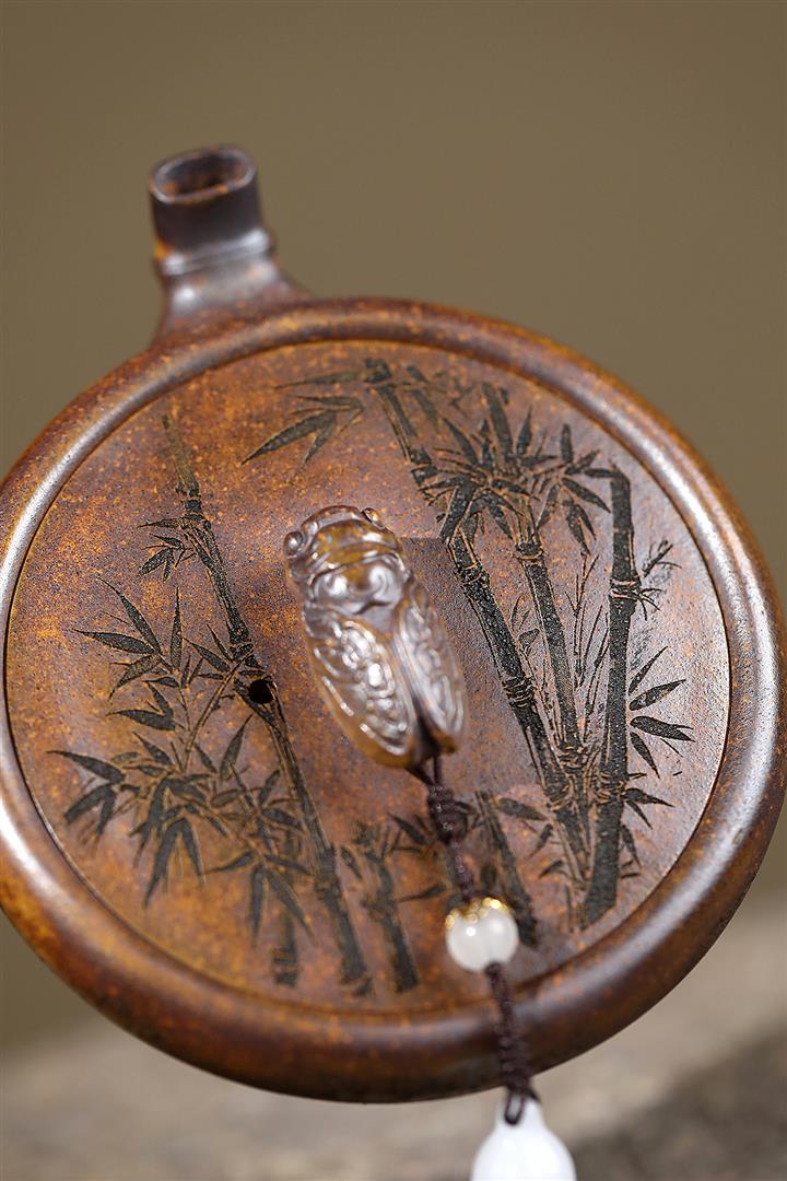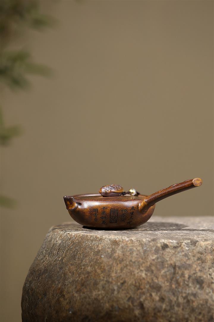 【泥料特點】砂土氣重,似淳實農民,日久使用,漸露鋒芒,養成變化,溫潤莊重。紫砂是壹種雙重氣孔結構的多孔性材質,氣孔微細,密度高。用紫砂壺沏茶,不失原味,且香不渙散,得茶之真香真味。紫砂使用越久,壺身色澤越發光亮照人,氣韻溫雅。紫砂壺長久使用器身會因撫摸擦拭,變得越發溫潤光澤。