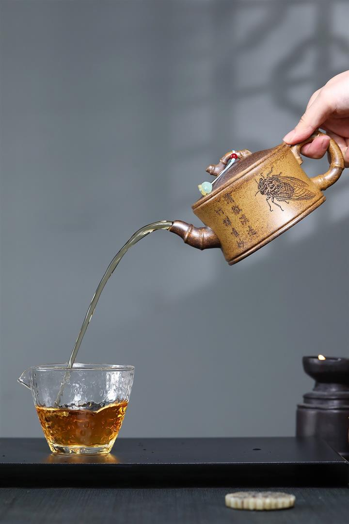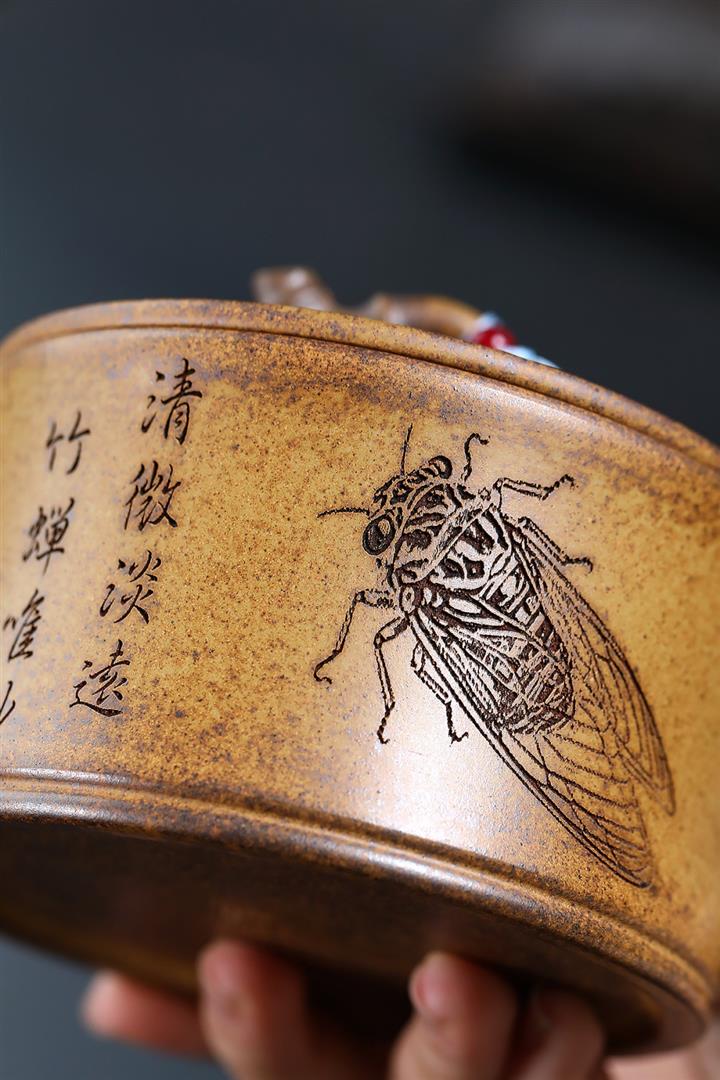 【泥料特點】砂土氣重,似淳實農民,日久使用,漸露鋒芒,養成變化,溫潤莊重。紫砂是壹種雙重氣孔結構的多孔性材質,氣孔微細,密度高。用紫砂壺沏茶,不失原味,且香不渙散,得茶之真香真味。紫砂使用越久,壺身色澤越發光亮照人,氣韻溫雅。紫砂壺長久使用器身會因撫摸擦拭,變得越發溫潤光澤。