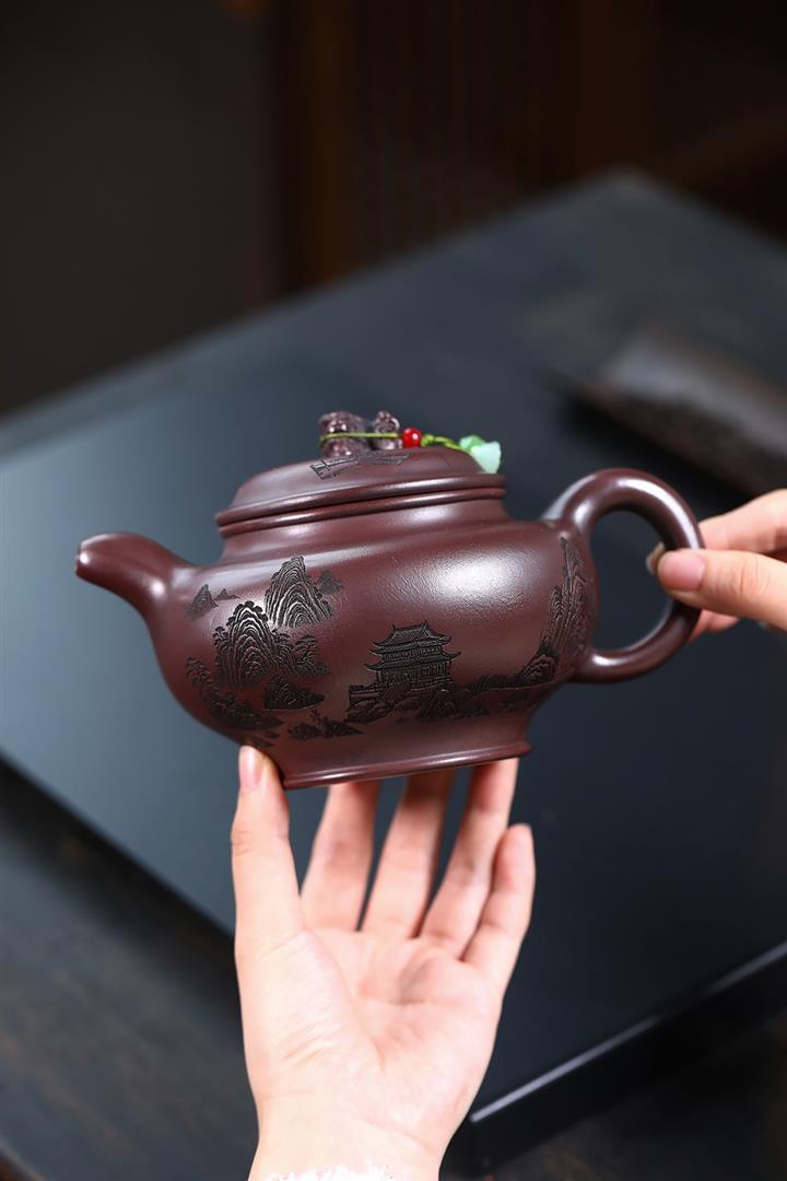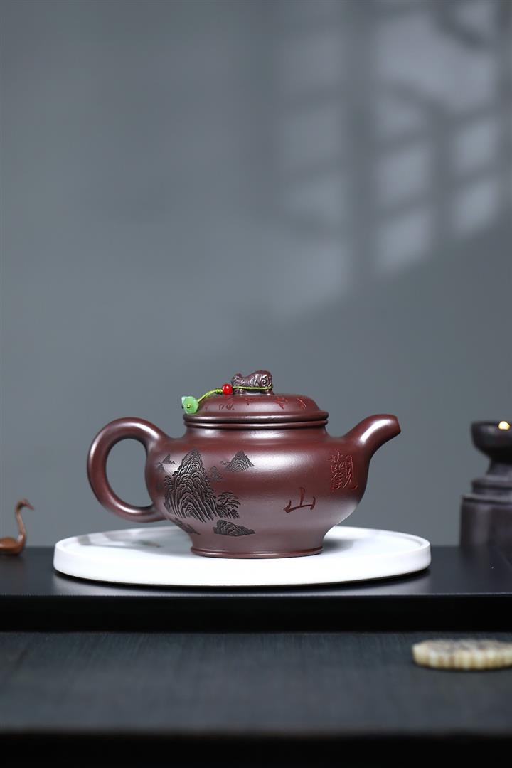 640cc原礦古銅烏泥觀山鎮嶽掇只壺POT8553