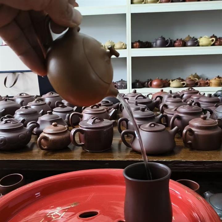 【泥料特點】砂土氣重,似淳實農民,日久使用,漸露鋒芒,養成變化,溫潤莊重。紫砂是壹種雙重氣孔結構的多孔性材質,氣孔微細,密度高。用紫砂壺沏茶,不失原味,且香不渙散,得茶之真香真味。紫砂使用越久,壺身色澤越發光亮照人,氣韻溫雅。紫砂壺長久使用器身會因撫摸擦拭,變得越發溫潤光澤。