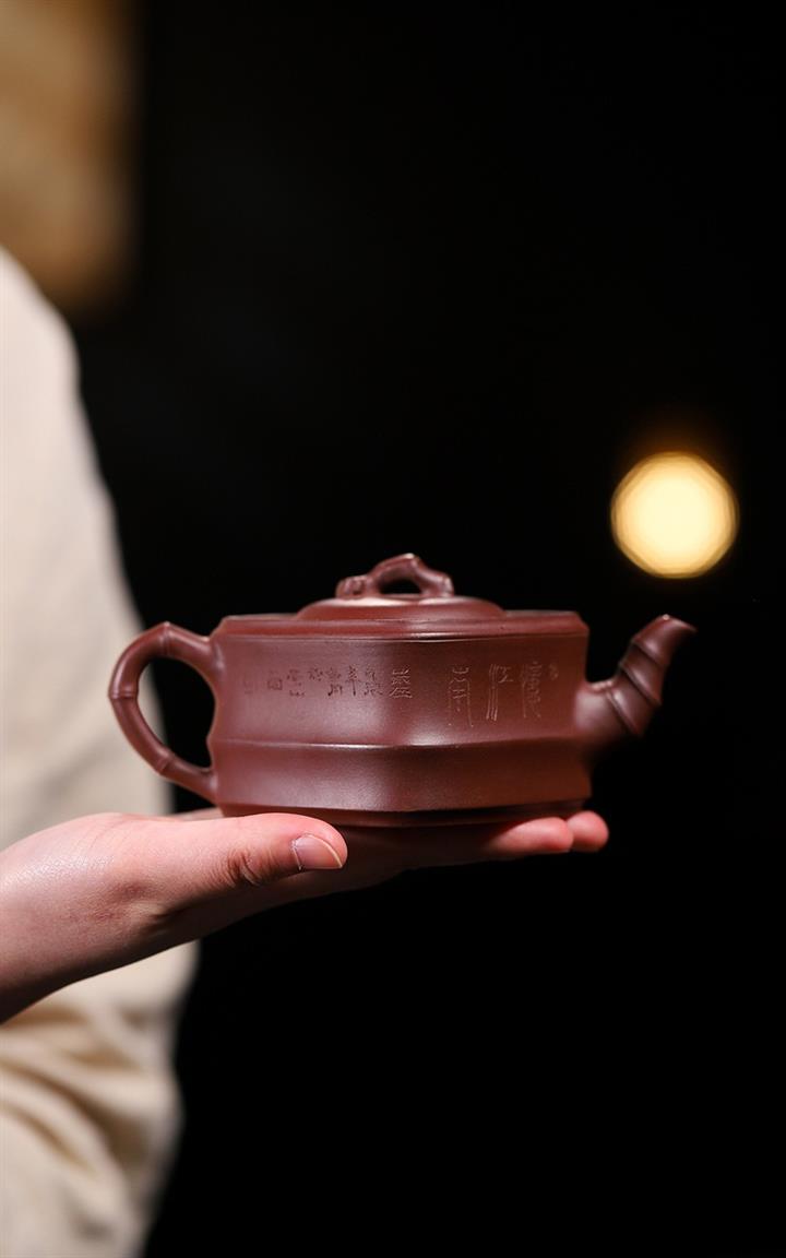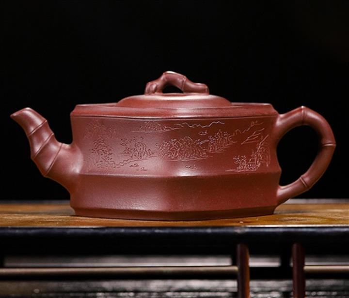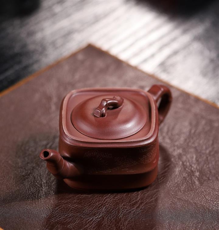 250cc原礦紫泥刻繪四方竹茶壺POT8568