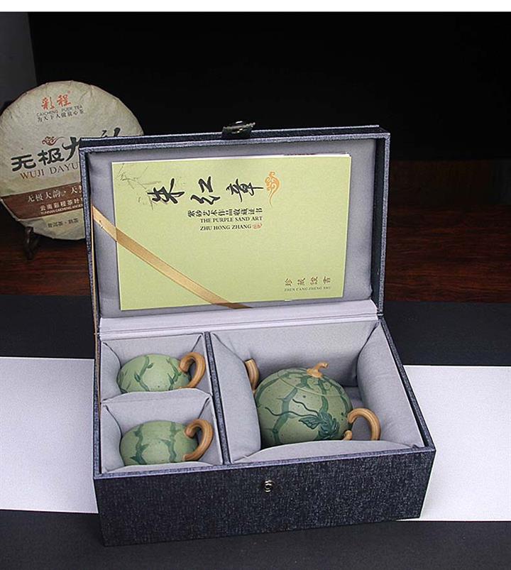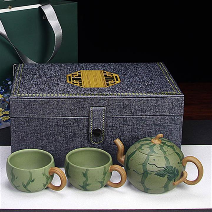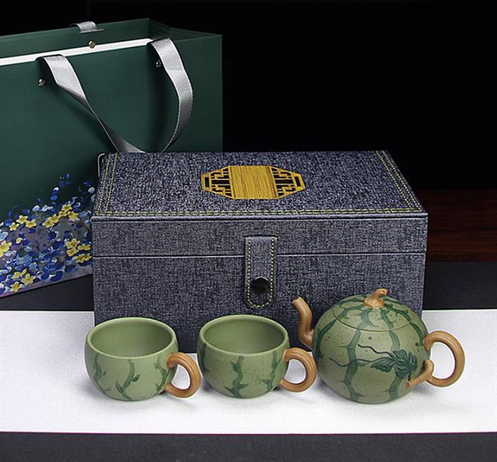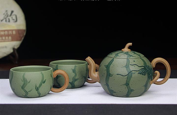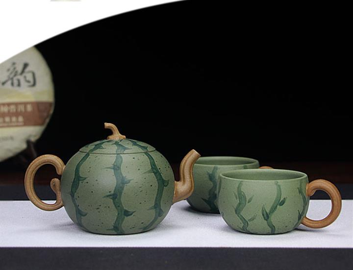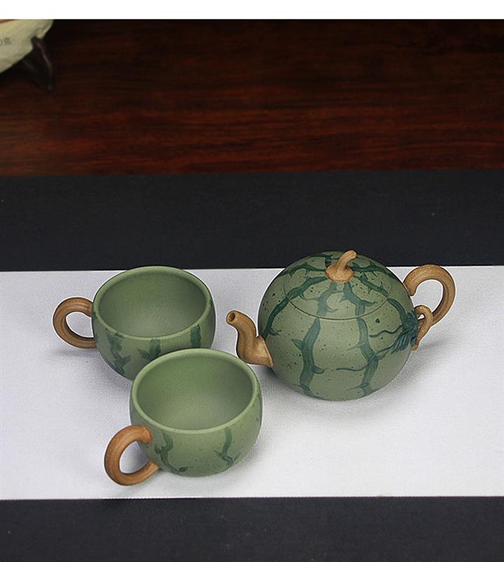 290cc原礦豆青泥套裝西瓜茶壺POT8584