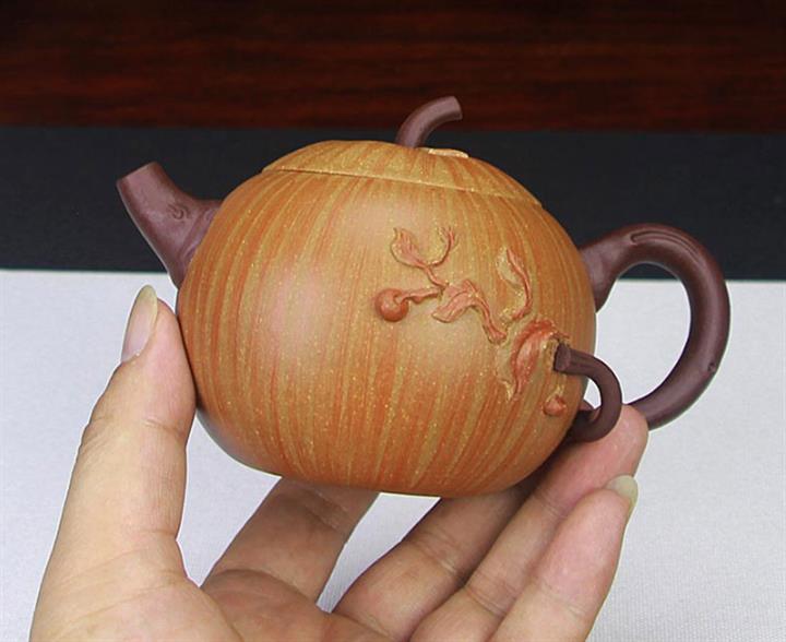 原礦紫泥茄瓜堆繪茶壺POT8592