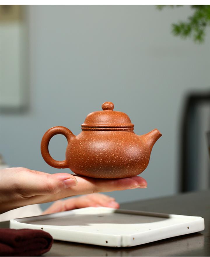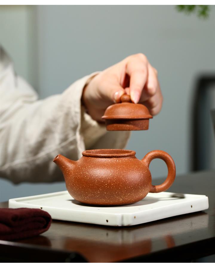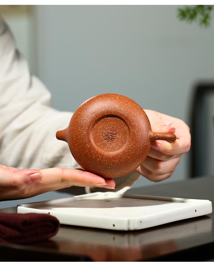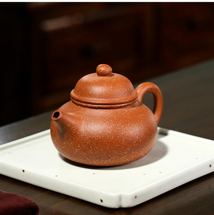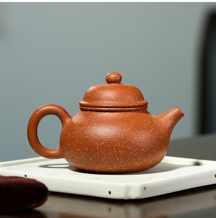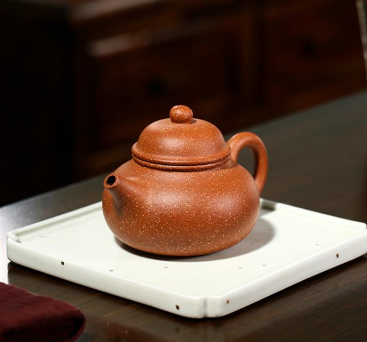 【泥料特點】砂土氣重,似淳實農民,日久使用,漸露鋒芒,養成變化,溫潤莊重。紫砂是壹種雙重氣孔結構的多孔性材質,氣孔微細,密度高。用紫砂壺沏茶,不失原味,且香不渙散,得茶之真香真味。紫砂使用越久,壺身色澤越發光亮照人,氣韻溫雅。紫砂壺長久使用器身會因撫摸擦拭,變得越發溫潤光澤。