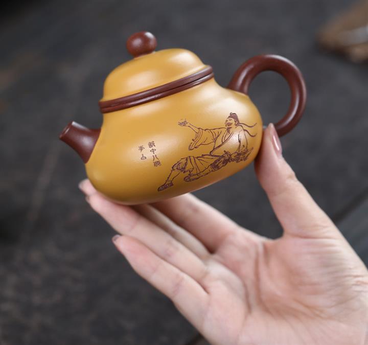 200cc原礦降坡泥方器刻繪茶壺POT8598