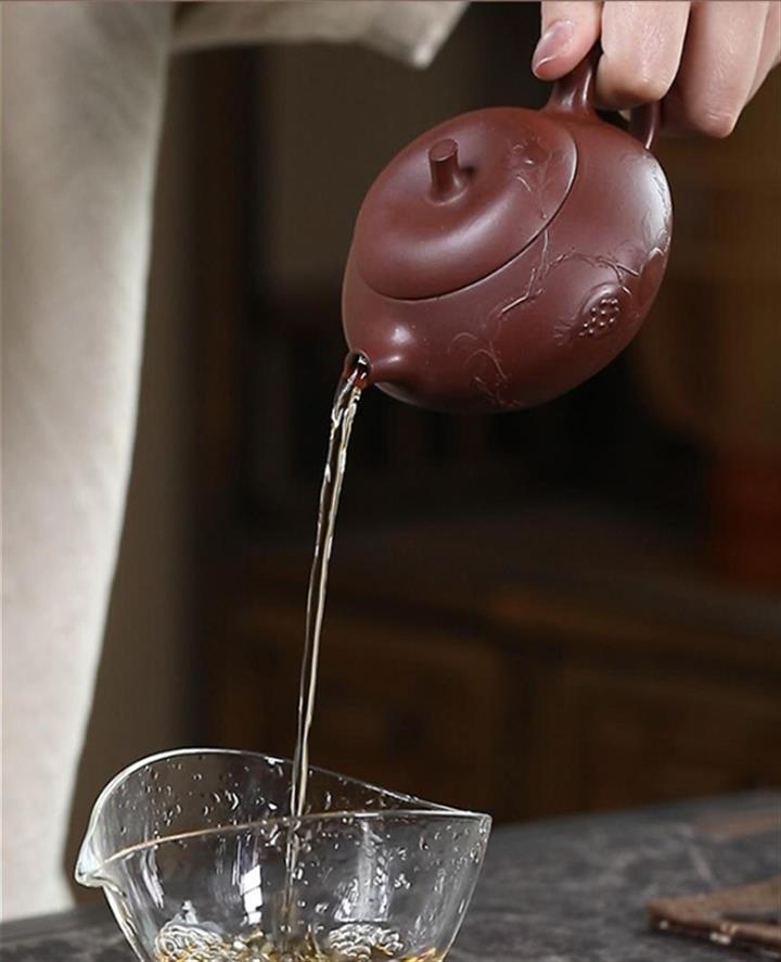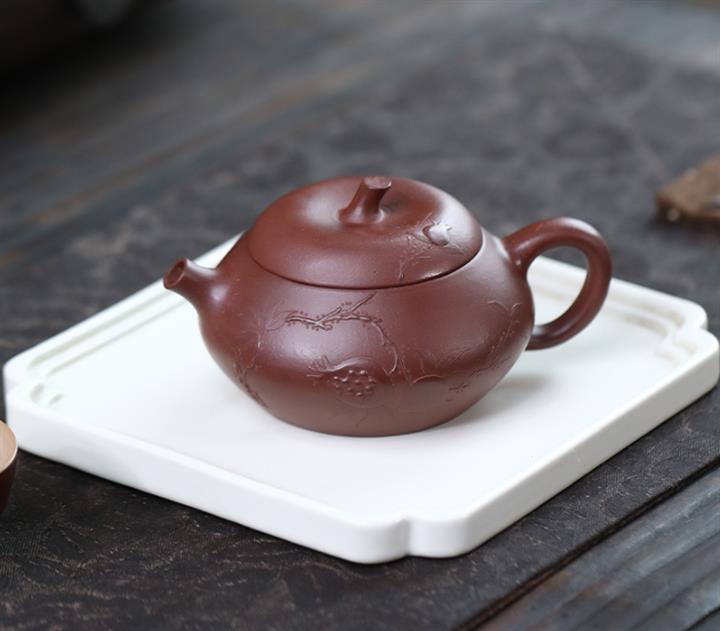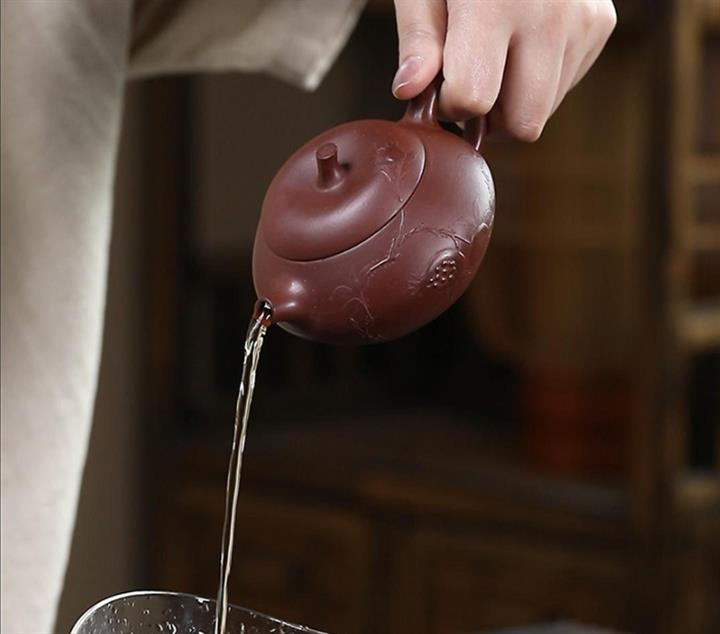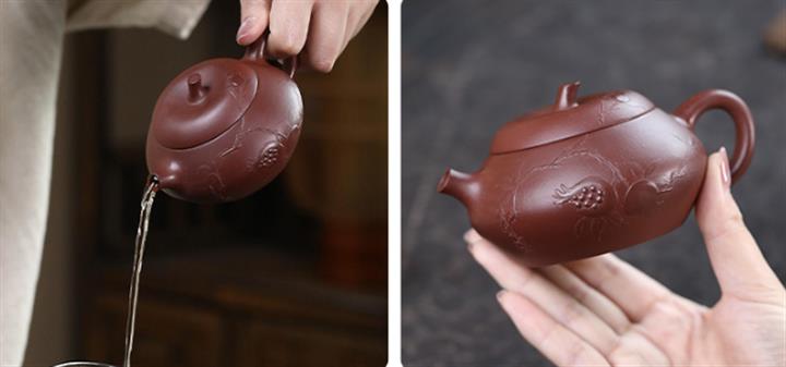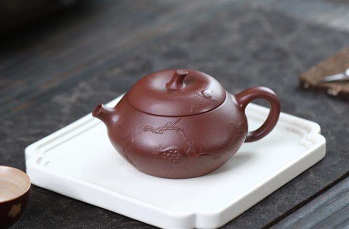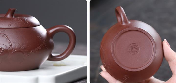 【泥料特點】砂土氣重,似淳實農民,日久使用,漸露鋒芒,養成變化,溫潤莊重。紫砂是壹種雙重氣孔結構的多孔性材質,氣孔微細,密度高。用紫砂壺沏茶,不失原味,且香不渙散,得茶之真香真味。紫砂使用越久,壺身色澤越發光亮照人,氣韻溫雅。紫砂壺長久使用器身會因撫摸擦拭,變得越發溫潤光澤。