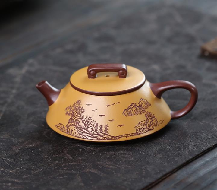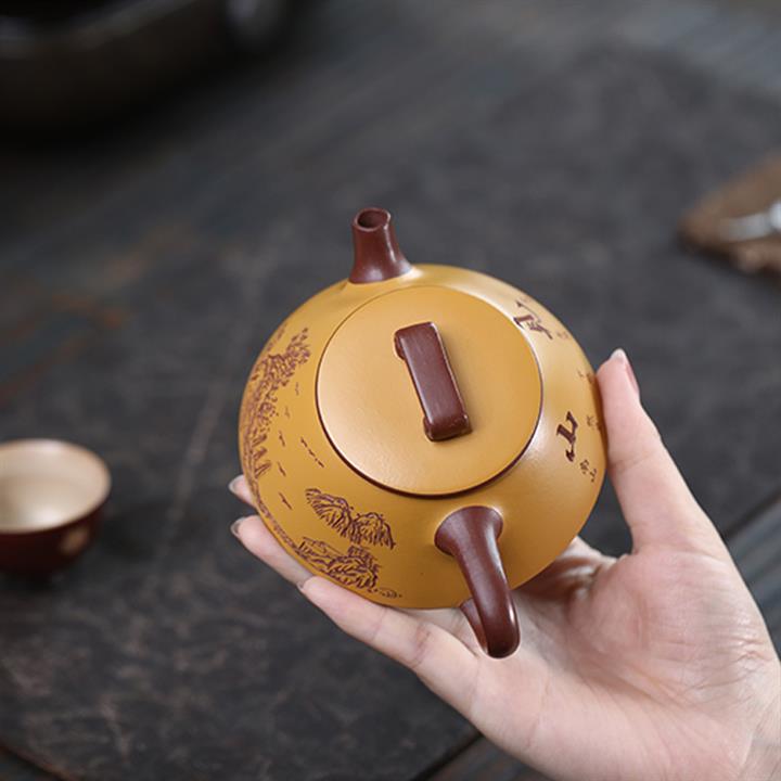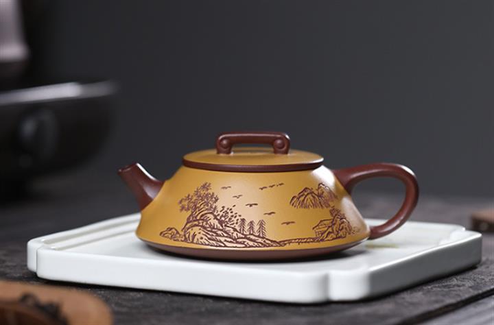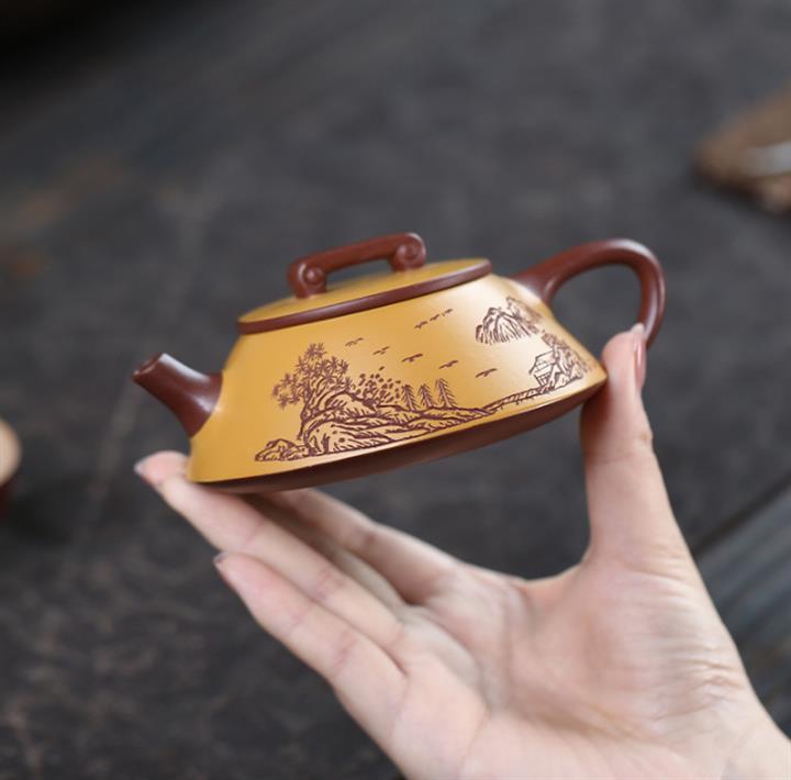 200cc原礦降坡泥方器刻繪茶壺POT8598