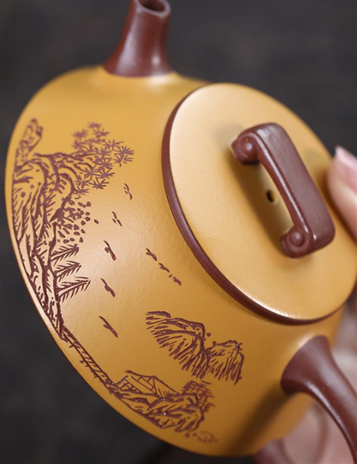 【作品介紹】此款壺形線條流暢,壺把,壺嘴,壺身壹氣呵成栩栩如生,是收藏把玩的好壺,泥料色澤古樸典雅,日久使用,漸露鋒芒,養成變化快,溫潤莊重,用其泡茶,使用的年代久,壺身就溫潤,泡出來的茶湯也就醇郁芳馨。