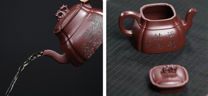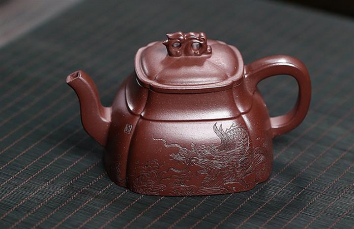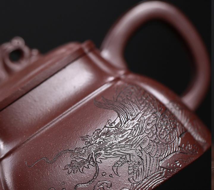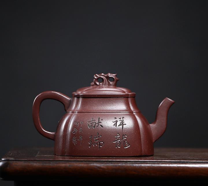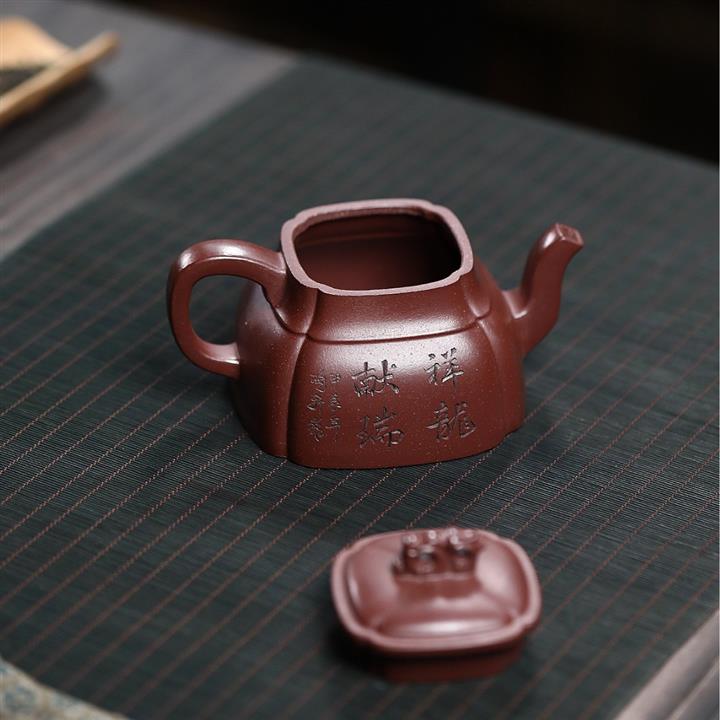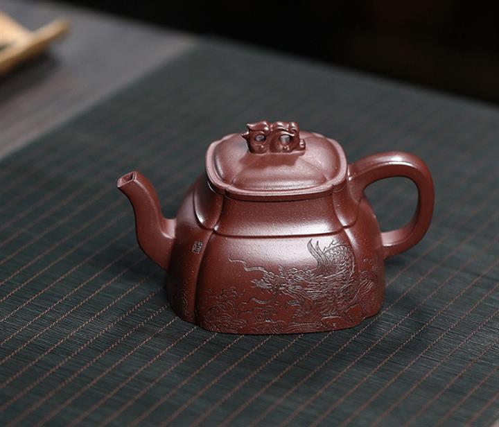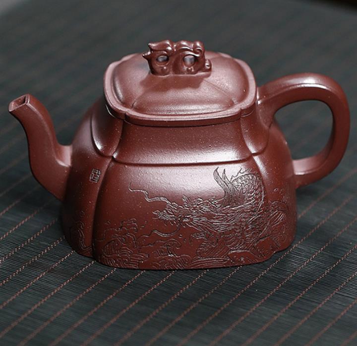 240cc原礦龍血砂四方祥龍獻瑞茶壺POT8601
