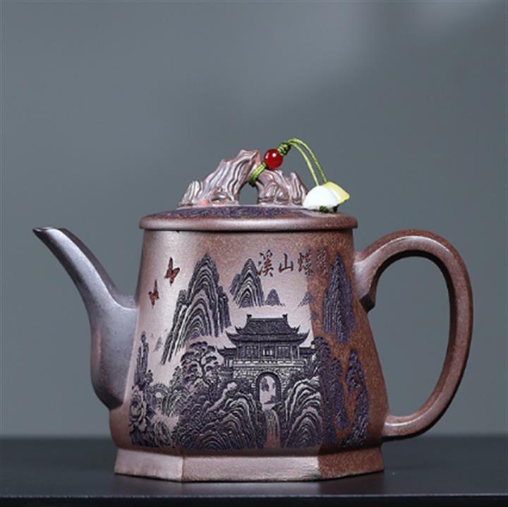 350cc原礦老紫泥桃源逸趣石瓢茶壺POT8615