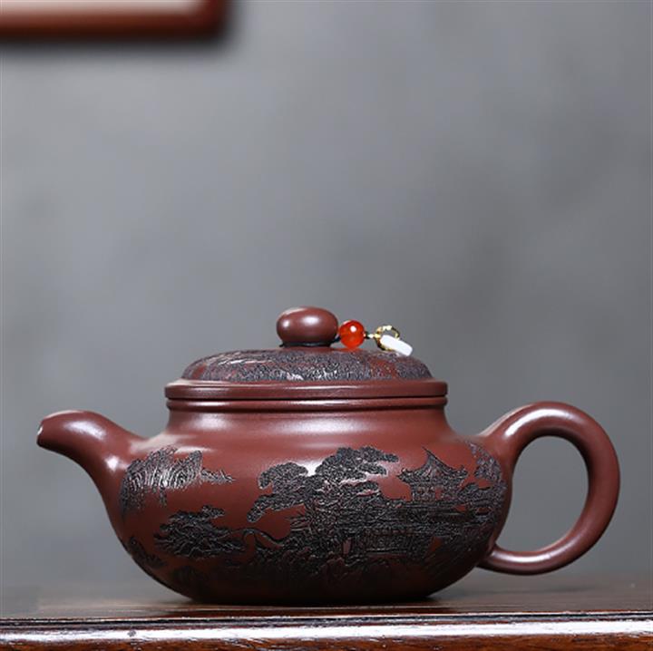 400cc原礦紫泥刻繪山水仿古茶壺POT8616