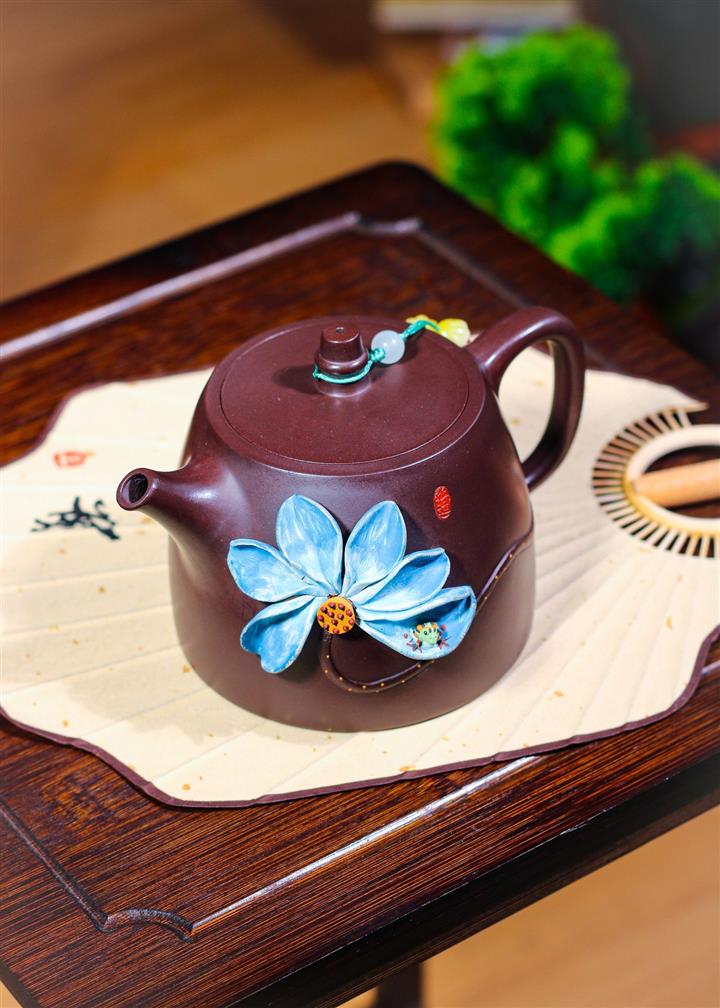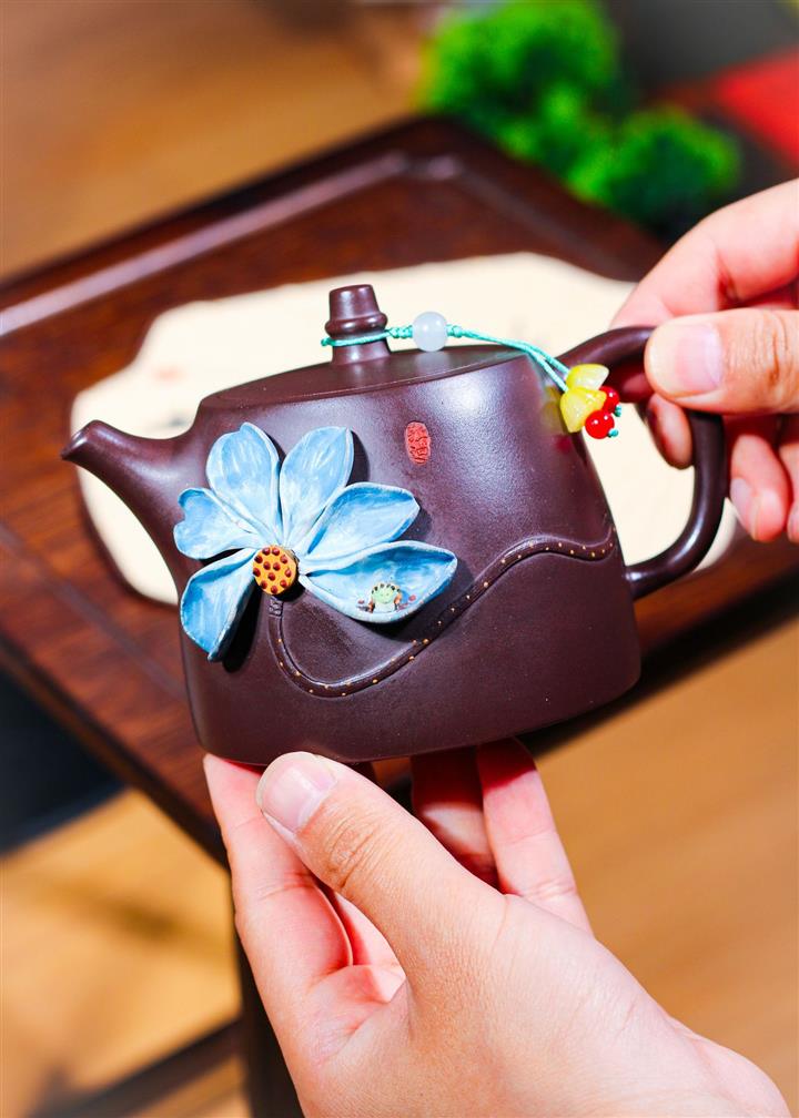 350cc原礦老紫泥蛙趣荷花西施茶壺POT8608