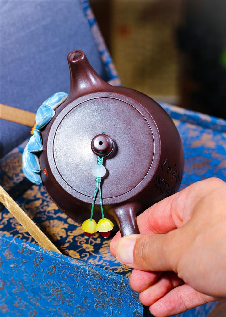 【泥料特點】砂土氣重,似淳實農民,日久使用,漸露鋒芒,養成變化,溫潤莊重。紫砂是壹種雙重氣孔結構的多孔性材質,氣孔微細,密度高。用紫砂壺沏茶,不失原味,且香不渙散,得茶之真香真味。紫砂使用越久,壺身色澤越發光亮照人,氣韻溫雅。紫砂壺長久使用器身會因撫摸擦拭,變得越發溫潤光澤。