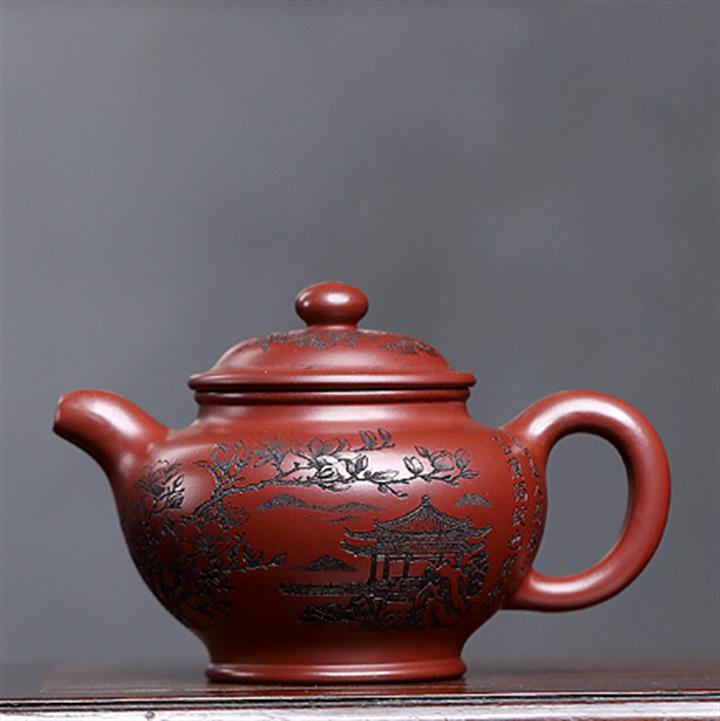 400cc原礦紫泥刻繪山水仿古茶壺POT8616