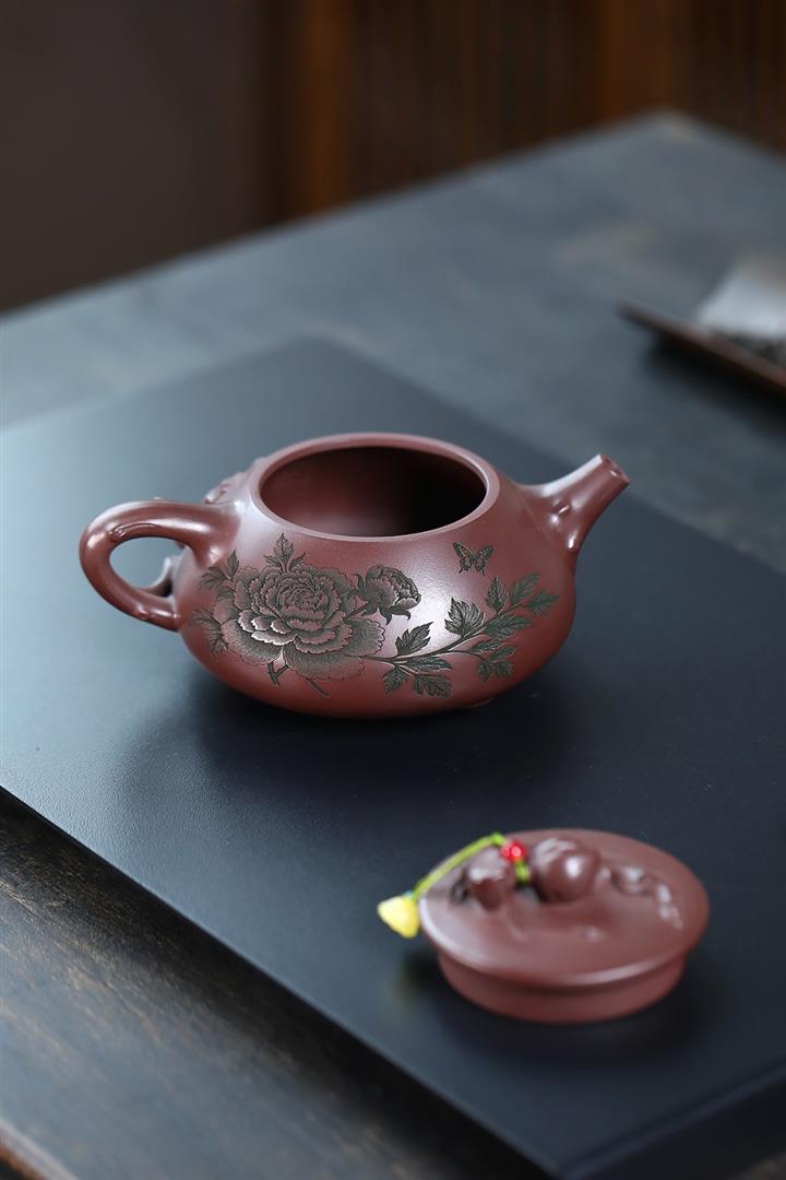 400cc原礦紫泥刻繪山水仿古茶壺POT8616