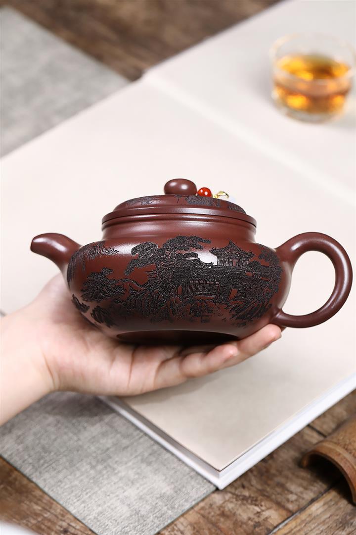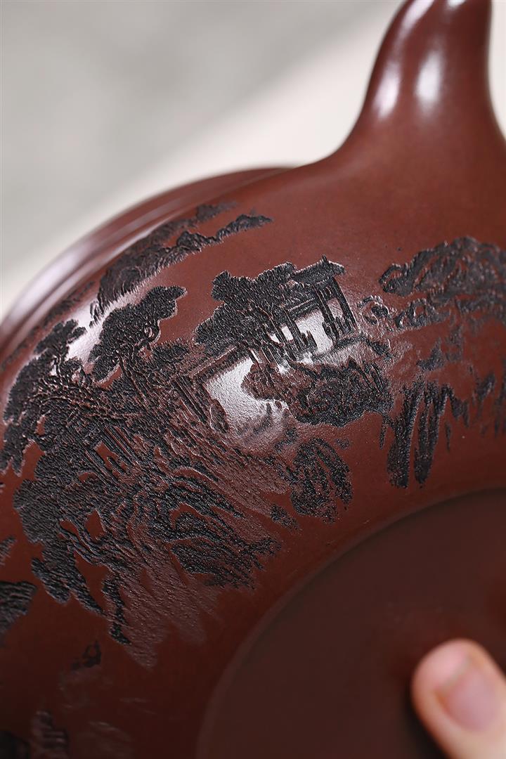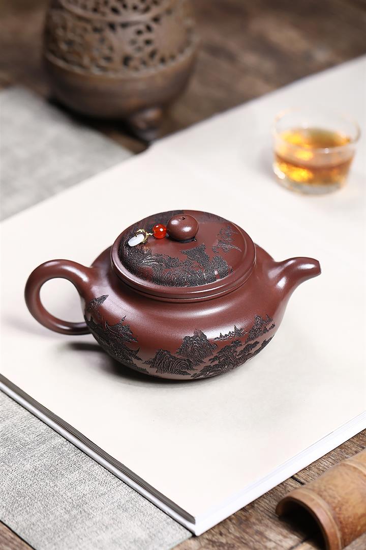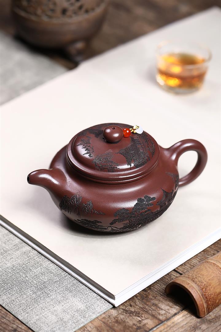 400cc原礦紫泥刻繪山水仿古茶壺POT8616