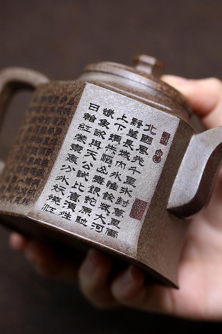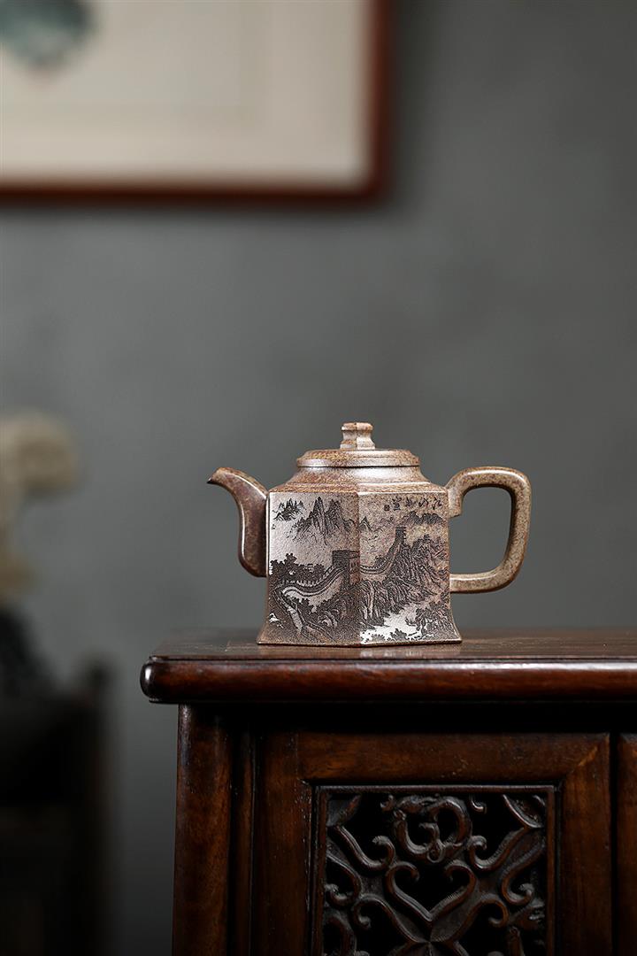 280cc原礦雲霧沈香泥江山如畫六方金鐘茶壺POT8618