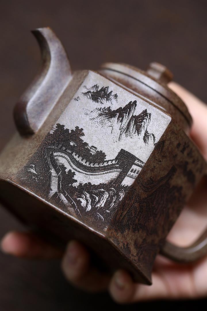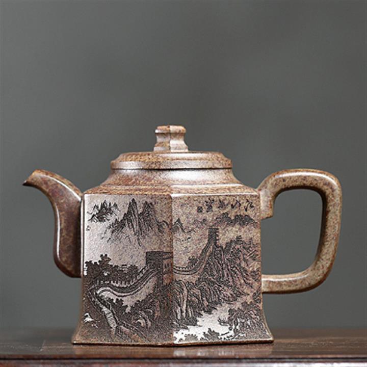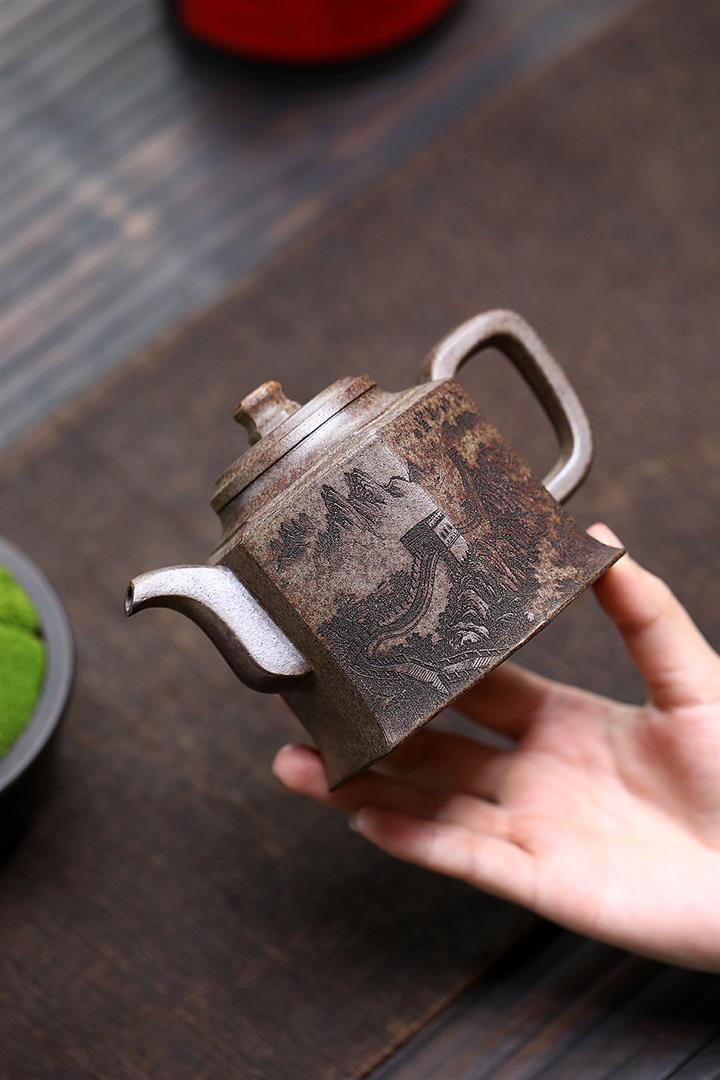 120cc-200cc原礦降坡泥刻繪山水大口漢瓦茶壺POT8619