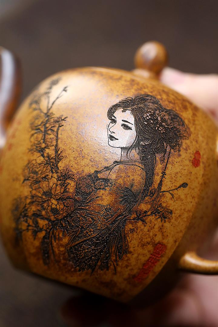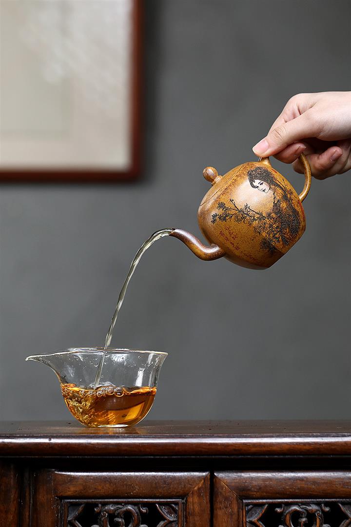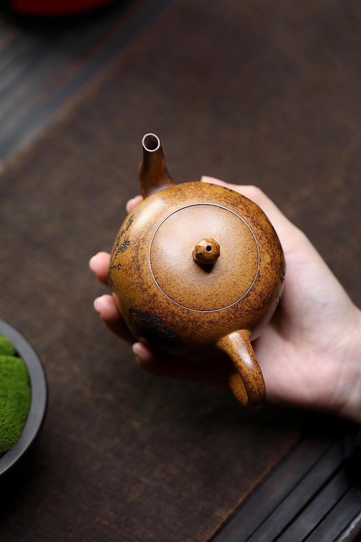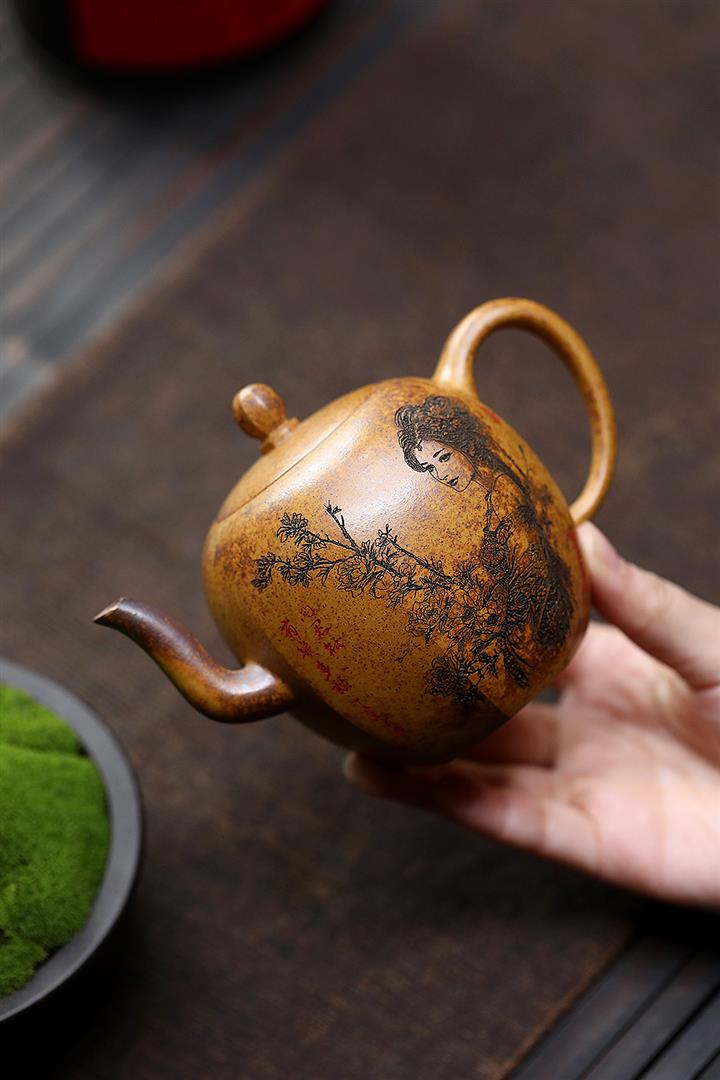 【作品介紹】此款壺形線條流暢,壺把,壺嘴,壺身壹氣呵成栩栩如生,是收藏把玩的好壺,泥料色澤古樸典雅,日久使用,漸露鋒芒,養成變化快,溫潤莊重,用其泡茶,使用的年代久,壺身就溫潤,泡出來的茶湯也就醇郁芳馨。