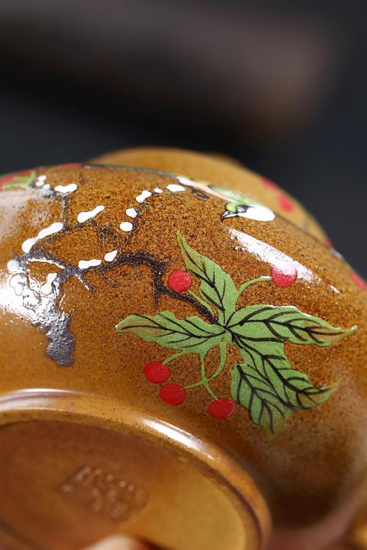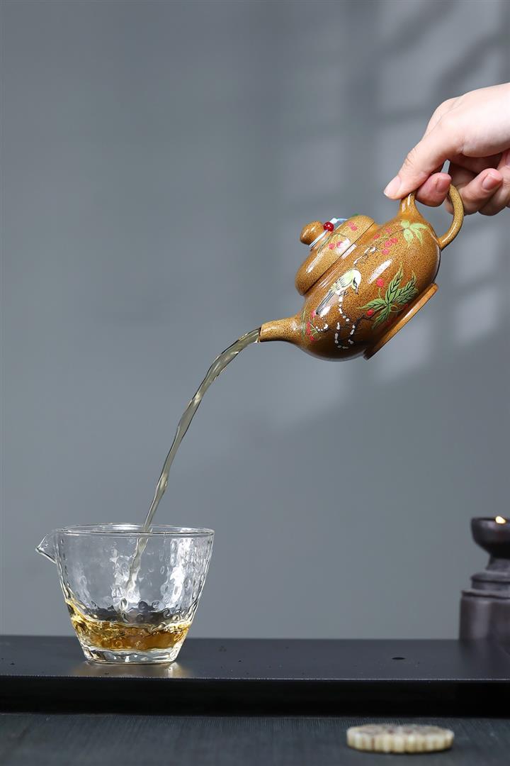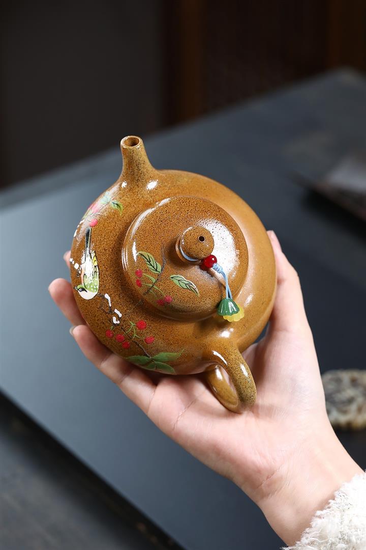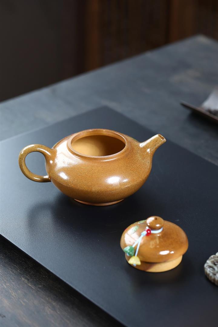 【泥料特點】砂土氣重,似淳實農民,日久使用,漸露鋒芒,養成變化,溫潤莊重。紫砂是壹種雙重氣孔結構的多孔性材質,氣孔微細,密度高。用紫砂壺沏茶,不失原味,且香不渙散,得茶之真香真味。紫砂使用越久,壺身色澤越發光亮照人,氣韻溫雅。紫砂壺長久使用器身會因撫摸擦拭,變得越發溫潤光澤。