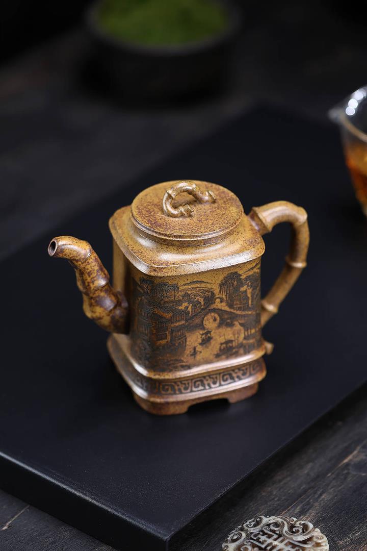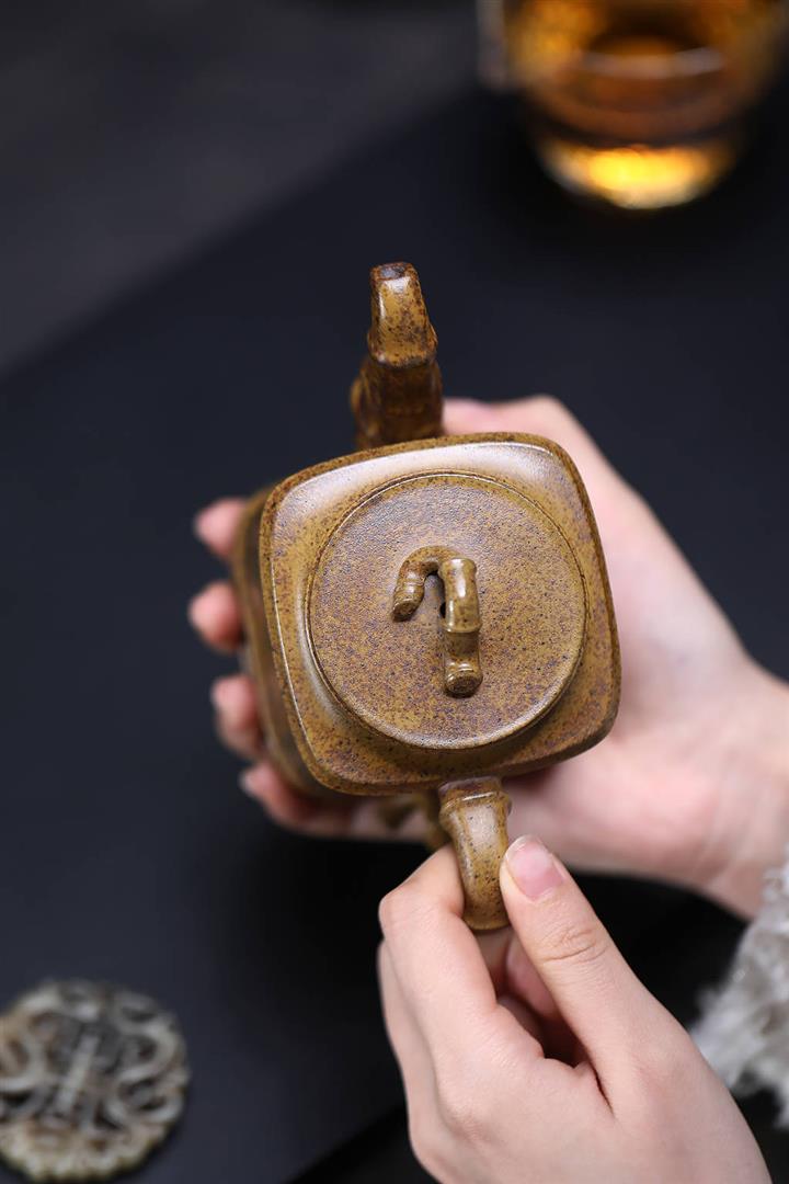 350cc原礦龍骨金砂特高溫四方竹段茶壺POT8637