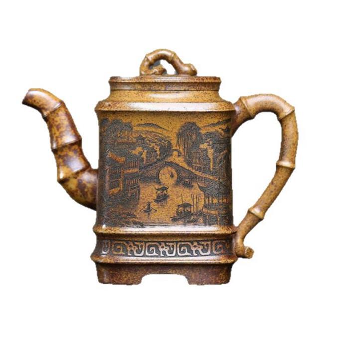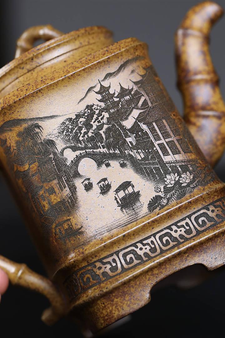 530cc原礦石紅泥春色滿園竹段茶壺POT8645