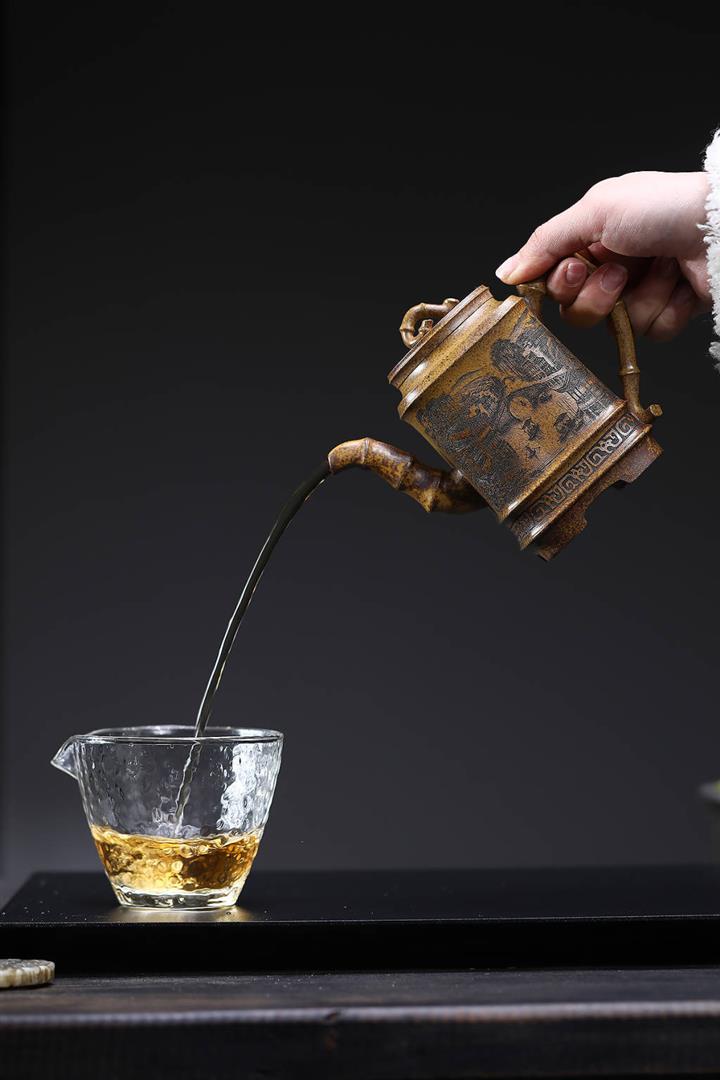【泥料特點】砂土氣重,似淳實農民,日久使用,漸露鋒芒,養成變化,溫潤莊重。紫砂是壹種雙重氣孔結構的多孔性材質,氣孔微細,密度高。用紫砂壺沏茶,不失原味,且香不渙散,得茶之真香真味。紫砂使用越久,壺身色澤越發光亮照人,氣韻溫雅。紫砂壺長久使用器身會因撫摸擦拭,變得越發溫潤光澤。