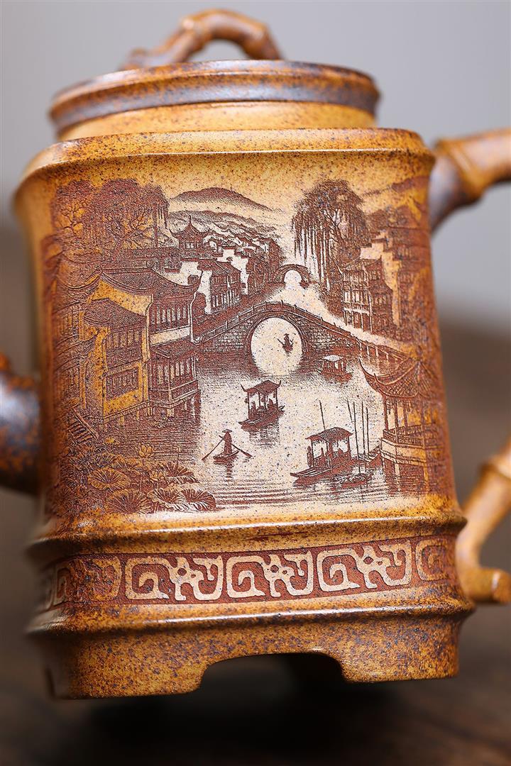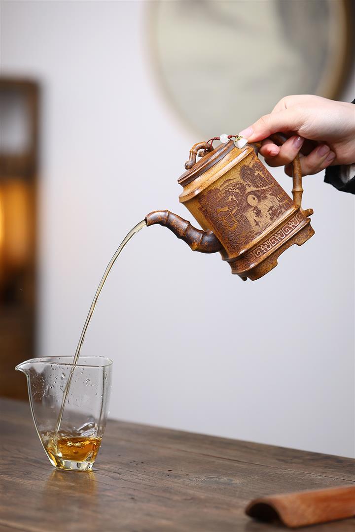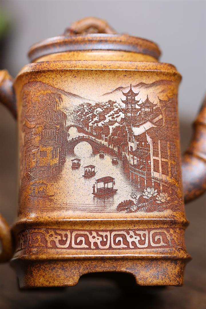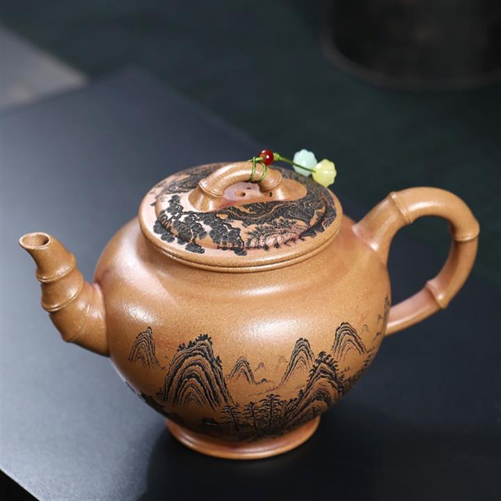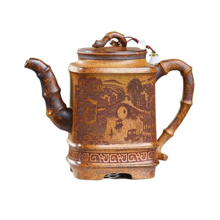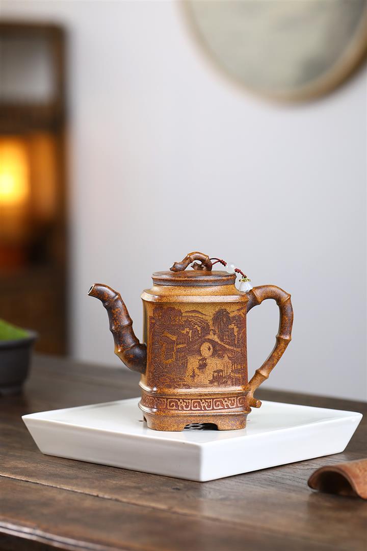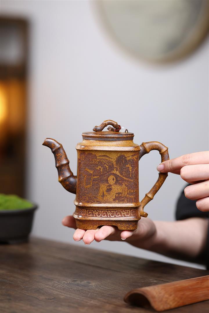 530cc原礦石紅泥春色滿園竹段茶壺POT8645
