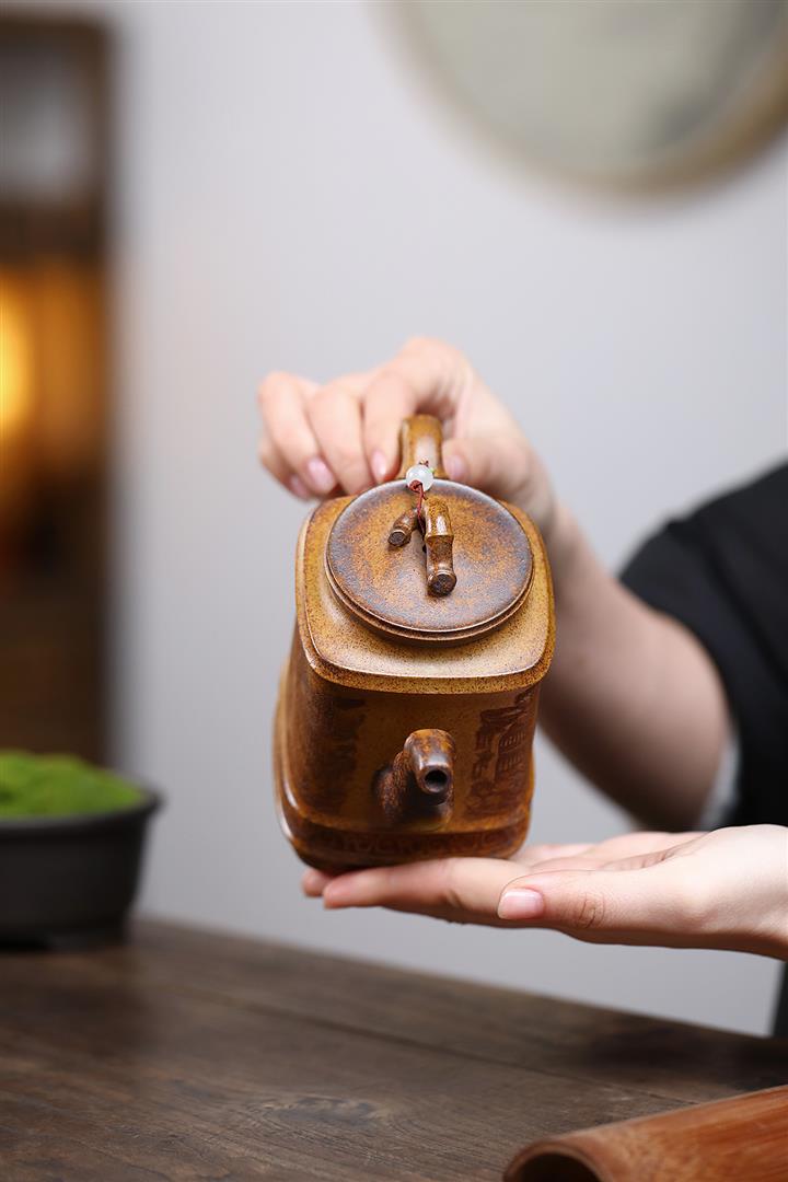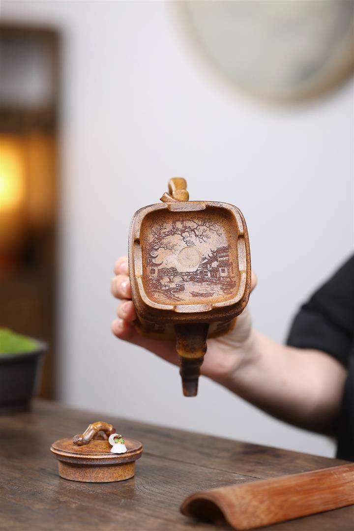 350cc原礦龍骨金砂特高溫四方竹段茶壺POT8637