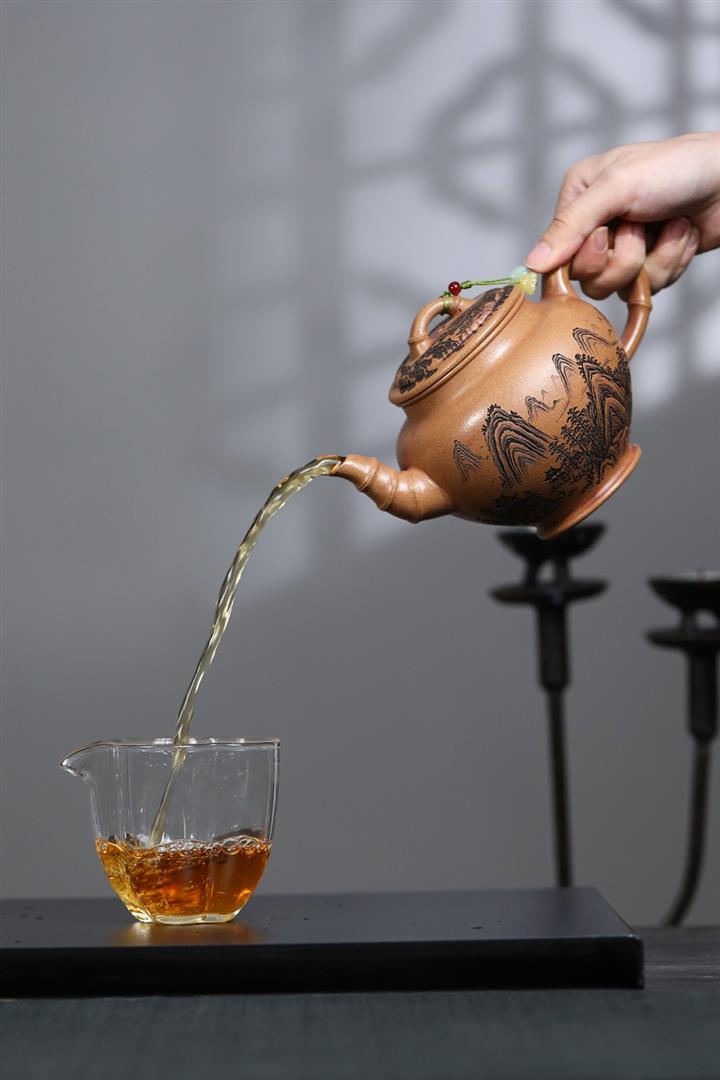 【泥料特點】砂土氣重,似淳實農民,日久使用,漸露鋒芒,養成變化,溫潤莊重。紫砂是壹種雙重氣孔結構的多孔性材質,氣孔微細,密度高。用紫砂壺沏茶,不失原味,且香不渙散,得茶之真香真味。紫砂使用越久,壺身色澤越發光亮照人,氣韻溫雅。紫砂壺長久使用器身會因撫摸擦拭,變得越發溫潤光澤。