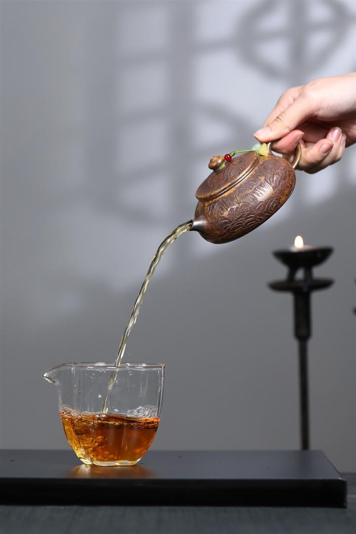 【泥料特點】砂土氣重,似淳實農民,日久使用,漸露鋒芒,養成變化,溫潤莊重。紫砂是壹種雙重氣孔結構的多孔性材質,氣孔微細,密度高。用紫砂壺沏茶,不失原味,且香不渙散,得茶之真香真味。紫砂使用越久,壺身色澤越發光亮照人,氣韻溫雅。紫砂壺長久使用器身會因撫摸擦拭,變得越發溫潤光澤。