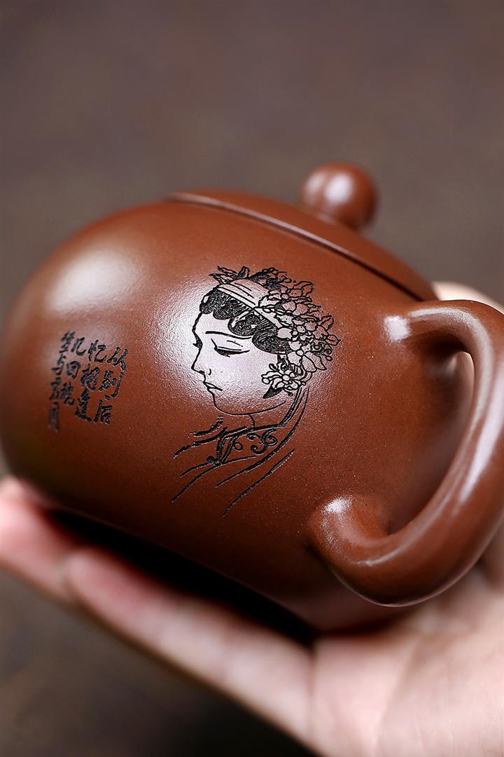 240cc原礦紫泥刻繪美人西施茶壺POT8650
