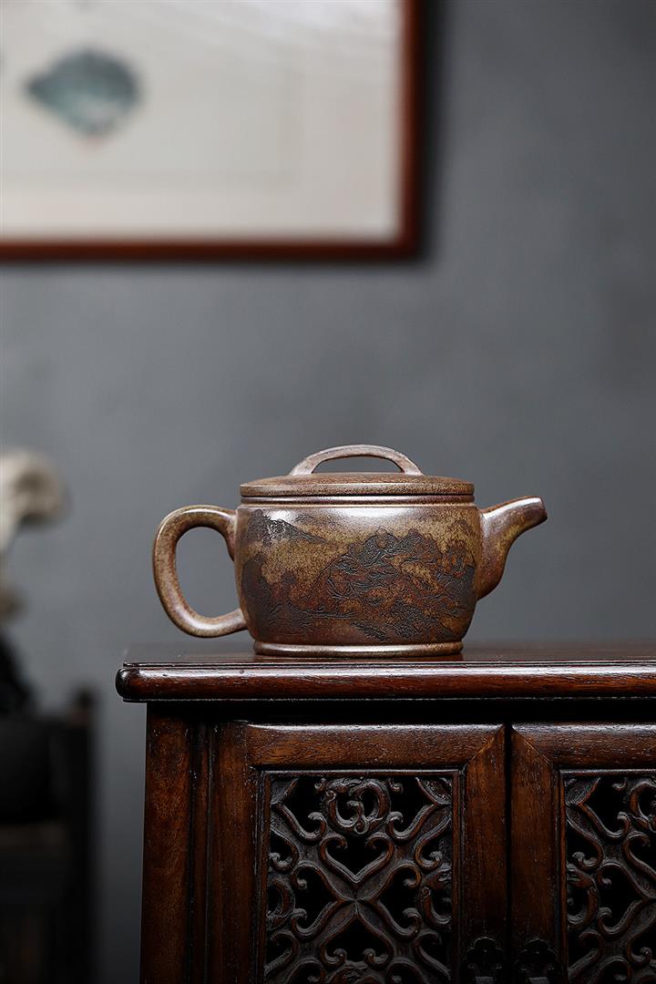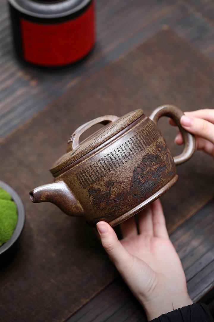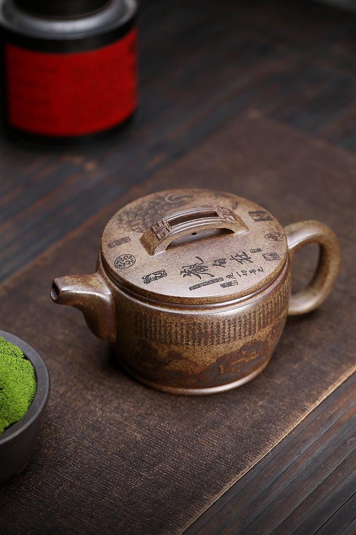 270cc原礦玄鐵石黃荷韻井欄泡茶壺POT8659