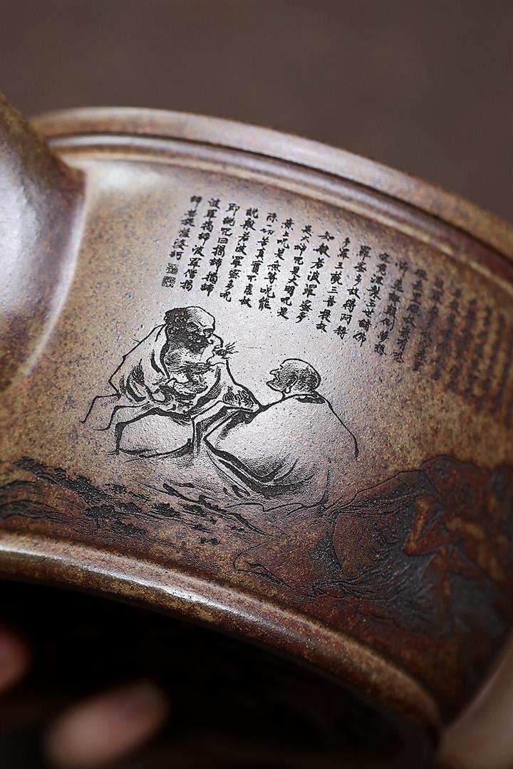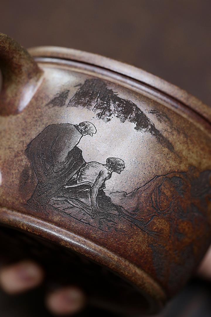 【泥料特點】砂土氣重,似淳實農民,日久使用,漸露鋒芒,養成變化,溫潤莊重。紫砂是壹種雙重氣孔結構的多孔性材質,氣孔微細,密度高。用紫砂壺沏茶,不失原味,且香不渙散,得茶之真香真味。紫砂使用越久,壺身色澤越發光亮照人,氣韻溫雅。紫砂壺長久使用器身會因撫摸擦拭,變得越發溫潤光澤。