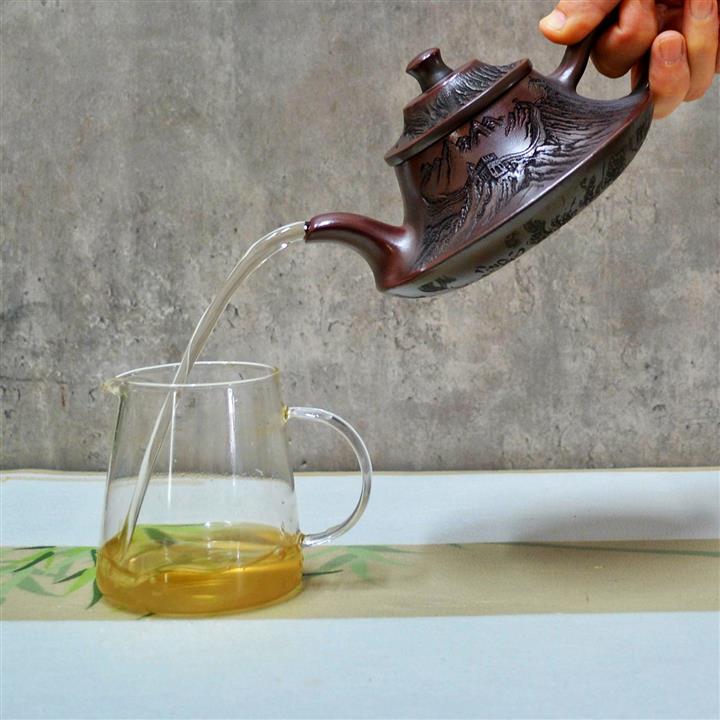 【泥料特點】砂土氣重,似淳實農民,日久使用,漸露鋒芒,養成變化,溫潤莊重。紫砂是壹種雙重氣孔結構的多孔性材質,氣孔微細,密度高。用紫砂壺沏茶,不失原味,且香不渙散,得茶之真香真味。紫砂使用越久,壺身色澤越發光亮照人,氣韻溫雅。紫砂壺長久使用器身會因撫摸擦拭,變得越發溫潤光澤。