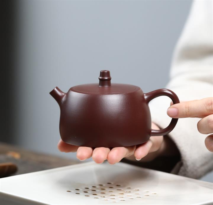 【泥料特點】砂土氣重,似淳實農民,日久使用,漸露鋒芒,養成變化,溫潤莊重。紫砂是壹種雙重氣孔結構的多孔性材質,氣孔微細,密度高。用紫砂壺沏茶,不失原味,且香不渙散,得茶之真香真味。紫砂使用越久,壺身色澤越發光亮照人,氣韻溫雅。紫砂壺長久使用器身會因撫摸擦拭,變得越發溫潤光澤。