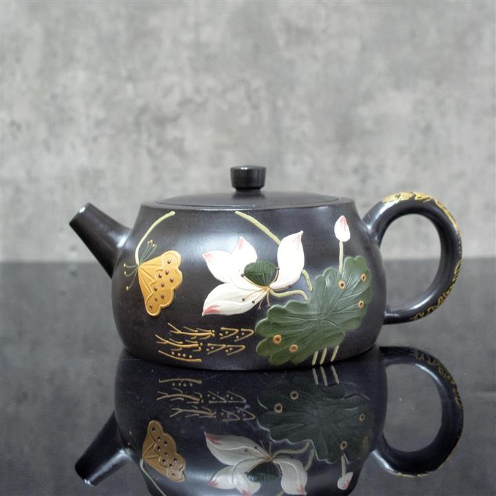 270cc原礦玄鐵石黃荷韻井欄泡茶壺POT8659