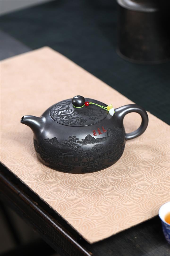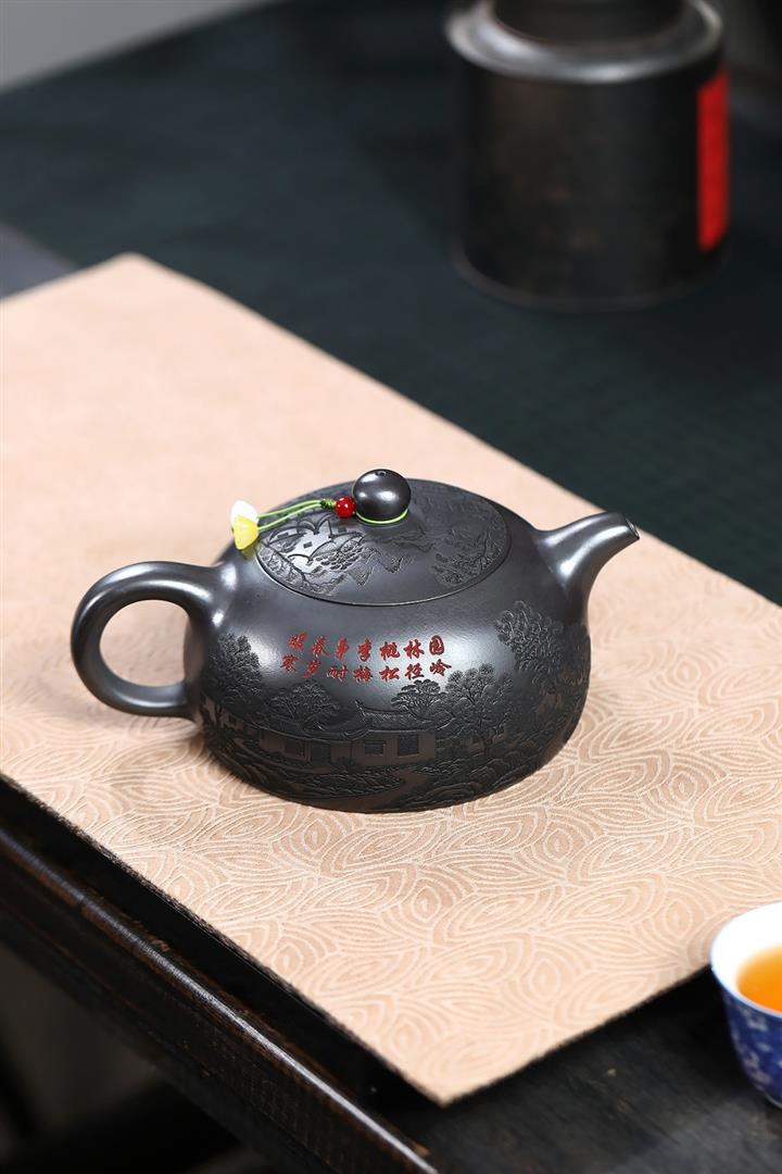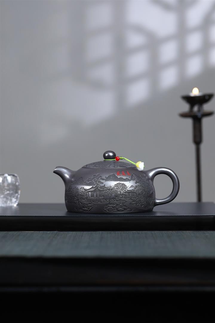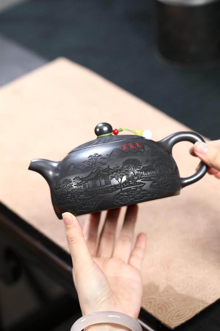 【作品介紹】此款壺形線條流暢,壺把,壺嘴,壺身壹氣呵成栩栩如生,是收藏把玩的好壺,泥料色澤古樸典雅,日久使用,漸露鋒芒,養成變化快,溫潤莊重,用其泡茶,使用的年代久,壺身就溫潤,泡出來的茶湯也就醇郁芳馨。