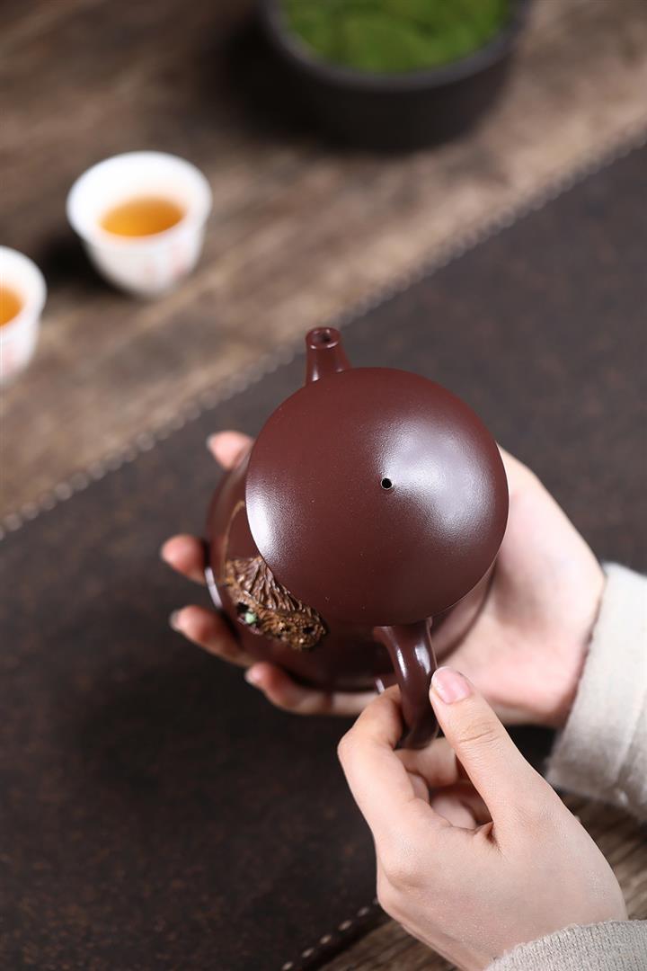 【泥料特點】砂土氣重,似淳實農民,日久使用,漸露鋒芒,養成變化,溫潤莊重。紫砂是壹種雙重氣孔結構的多孔性材質,氣孔微細,密度高。用紫砂壺沏茶,不失原味,且香不渙散,得茶之真香真味。紫砂使用越久,壺身色澤越發光亮照人,氣韻溫雅。紫砂壺長久使用器身會因撫摸擦拭,變得越發溫潤光澤。