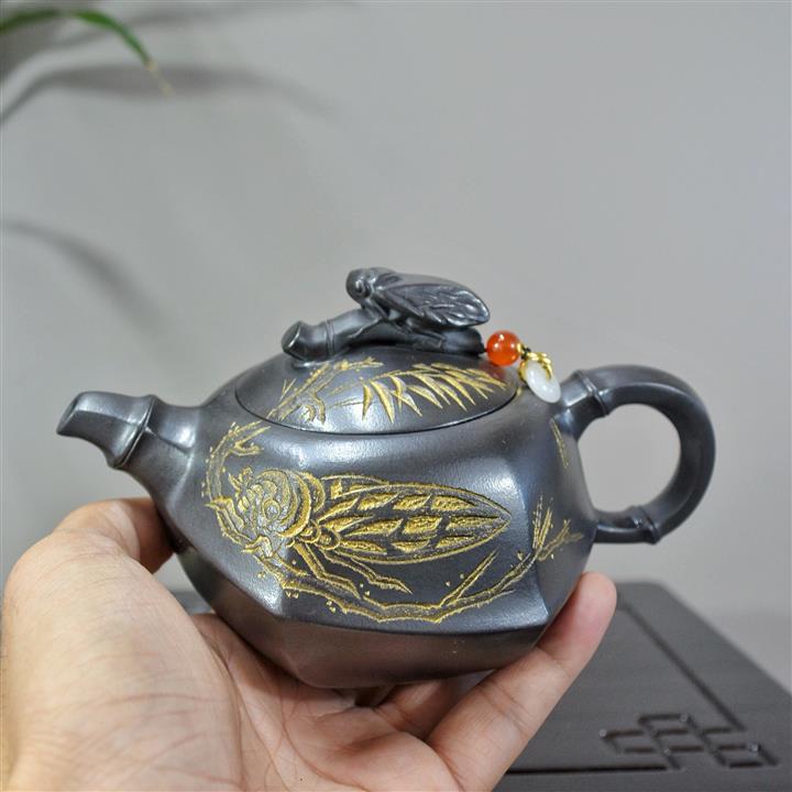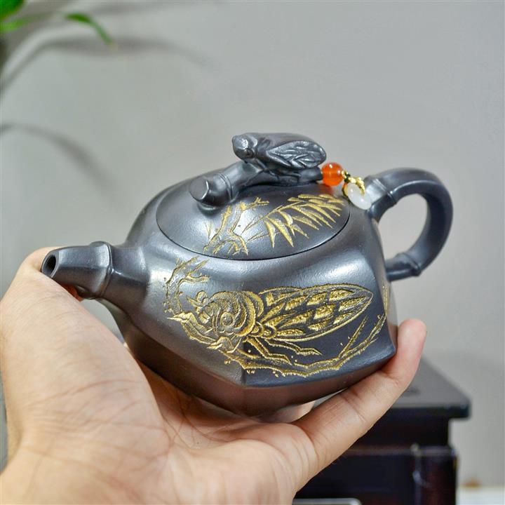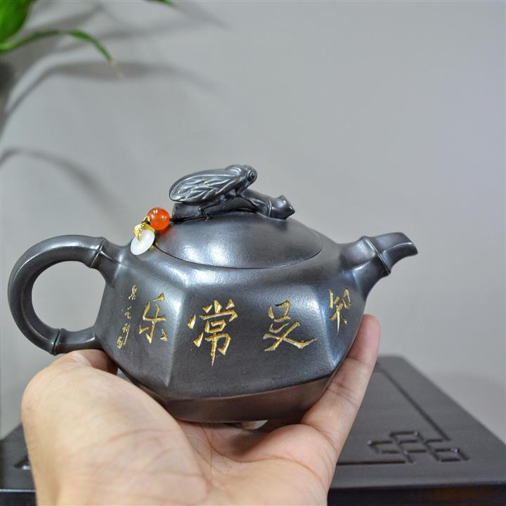220cc原礦黑泥神獸鉆石茶壺POT8675