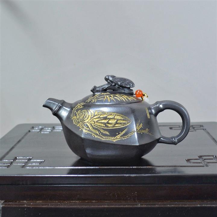 250cc原礦玄鐵石黃知足常樂泡茶壺POT8667