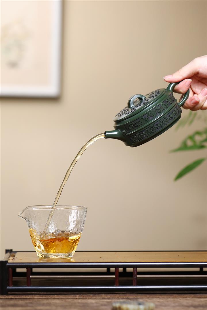 【作品介紹】此款壺形線條流暢,壺把,壺嘴,壺身壹氣呵成栩栩如生,是收藏把玩的好壺,泥料色澤古樸典雅,日久使用,漸露鋒芒,養成變化快,溫潤莊重,用其泡茶,使用的年代久,壺身就溫潤,泡出來的茶湯也就醇郁芳馨。
