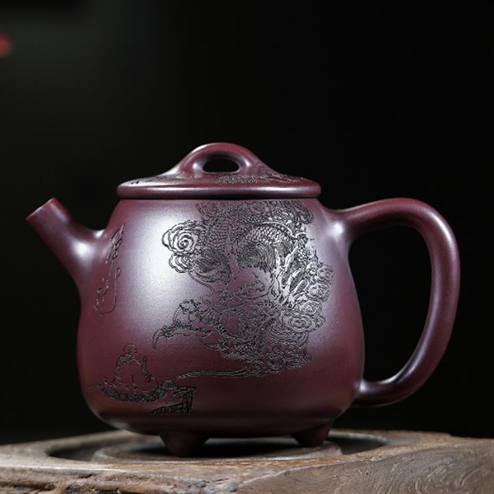 200cc原礦古紅泥遊龍戲鳳漢瓦茶壺POT8676