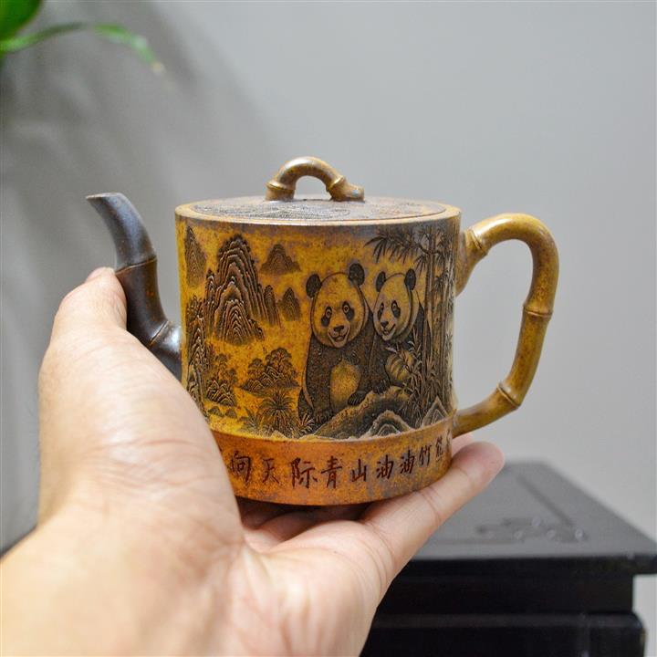 230cc原礦高溫段泥熊貓竹節泡茶壺POT8672