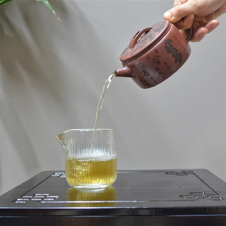 【泥料特點】砂土氣重,似淳實農民,日久使用,漸露鋒芒,養成變化,溫潤莊重。紫砂是壹種雙重氣孔結構的多孔性材質,氣孔微細,密度高。用紫砂壺沏茶,不失原味,且香不渙散,得茶之真香真味。紫砂使用越久,壺身色澤越發光亮照人,氣韻溫雅。紫砂壺長久使用器身會因撫摸擦拭,變得越發溫潤光澤。