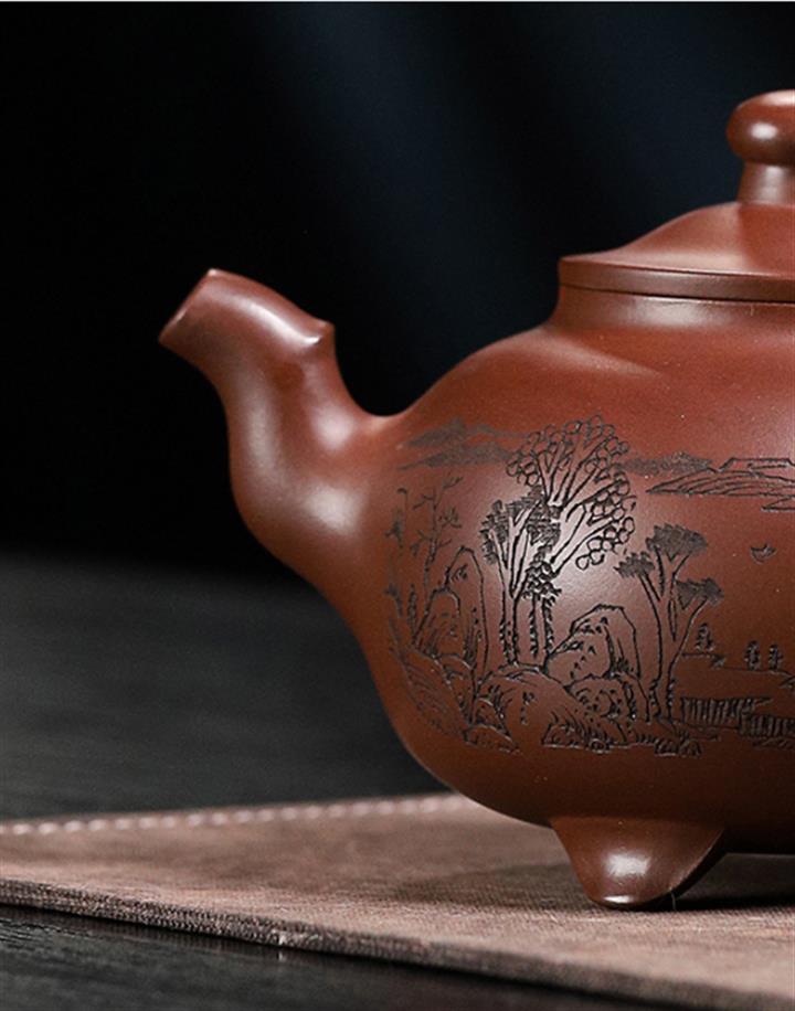 【泥料特點】砂土氣重,似淳實農民,日久使用,漸露鋒芒,養成變化,溫潤莊重。紫砂是壹種雙重氣孔結構的多孔性材質,氣孔微細,密度高。用紫砂壺沏茶,不失原味,且香不渙散,得茶之真香真味。紫砂使用越久,壺身色澤越發光亮照人,氣韻溫雅。紫砂壺長久使用器身會因撫摸擦拭,變得越發溫潤光澤。