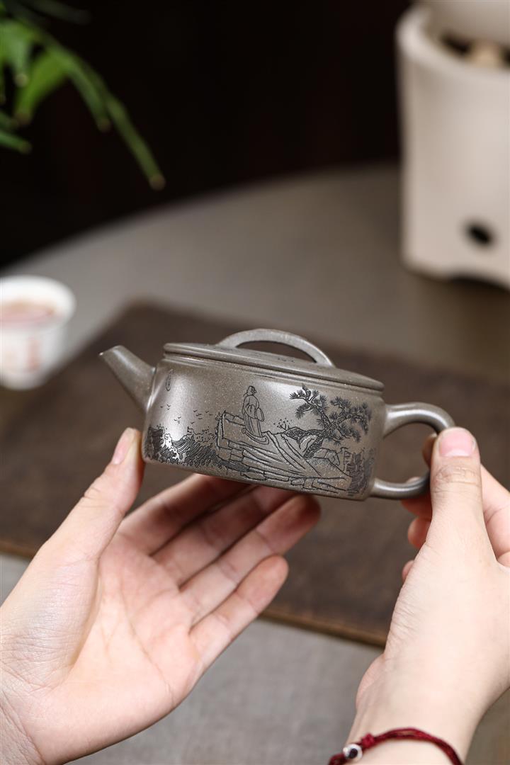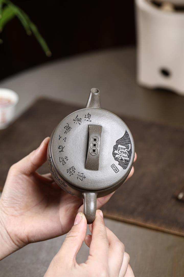 【作品介紹】此款壺形線條流暢,壺把,壺嘴,壺身壹氣呵成栩栩如生,是收藏把玩的好壺,泥料色澤古樸典雅,日久使用,漸露鋒芒,養成變化快,溫潤莊重,用其泡茶,使用的年代久,壺身就溫潤,泡出來的茶湯也就醇郁芳馨。