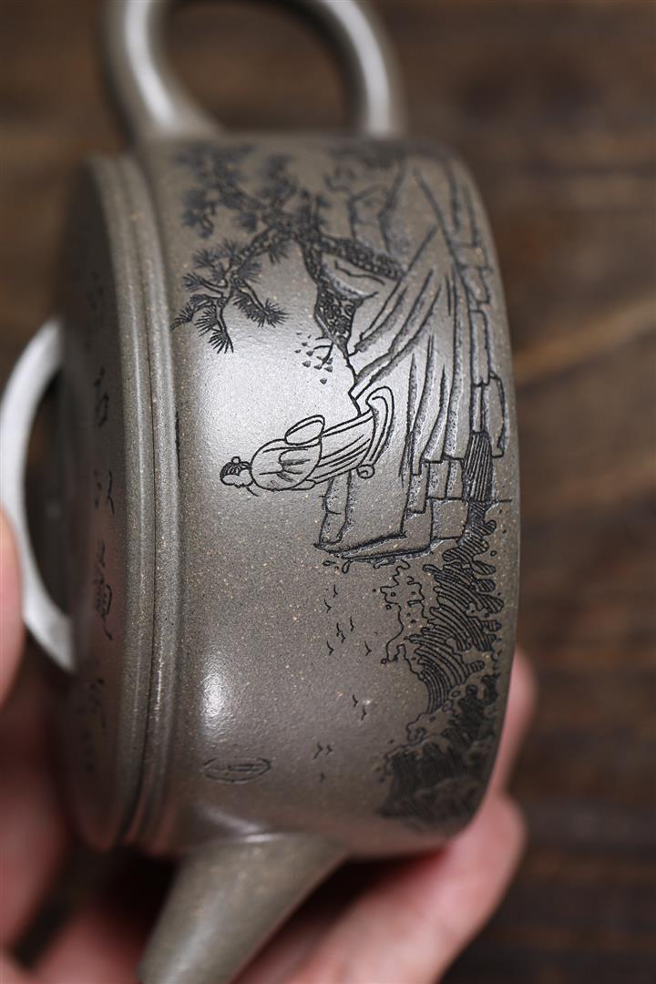 340cc原礦綠泥貝殼燒八方來財茶壺POT8720